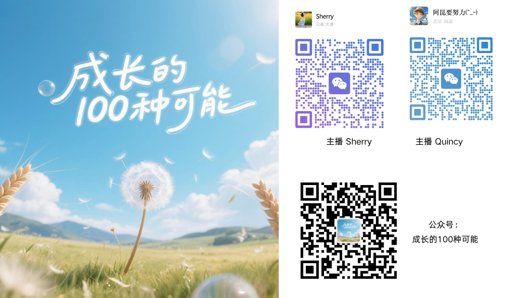 Quincy:主播,《成长的100种可能》主创,持续关注个体成长与社会议题的交叉点。