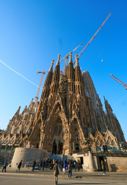 圣家族大教堂(高迪最著名的作品,仍在建设中,是巴塞罗那的标志性建筑)