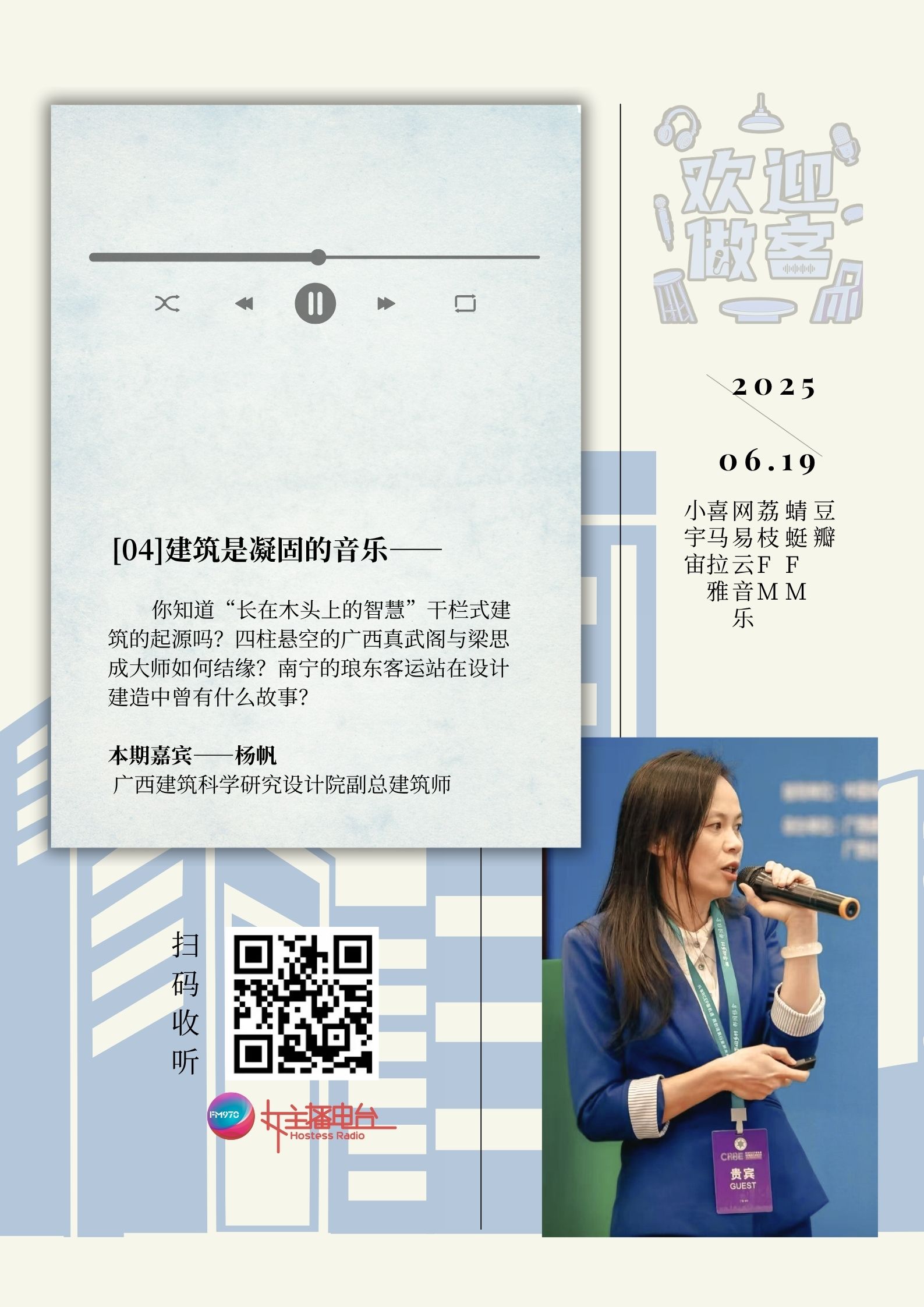 建筑不只是钢筋水泥!本期欢迎做客我们将对话出身建筑世家的建筑师,带你探秘真武阁“四柱悬空”的千古力学奇迹,回望南宁琅东客运站从诞生到变迁的城市印记,聆听家族三代的匠心传承与未泯的服装设计梦,走进偶像鬼才高迪的奇幻世界,并解码中国古建智慧——干栏式建筑。本周,跟随杨帆建筑师一起触摸建筑背后的温度与灵魂,重新发现身边的“凝固音乐”!