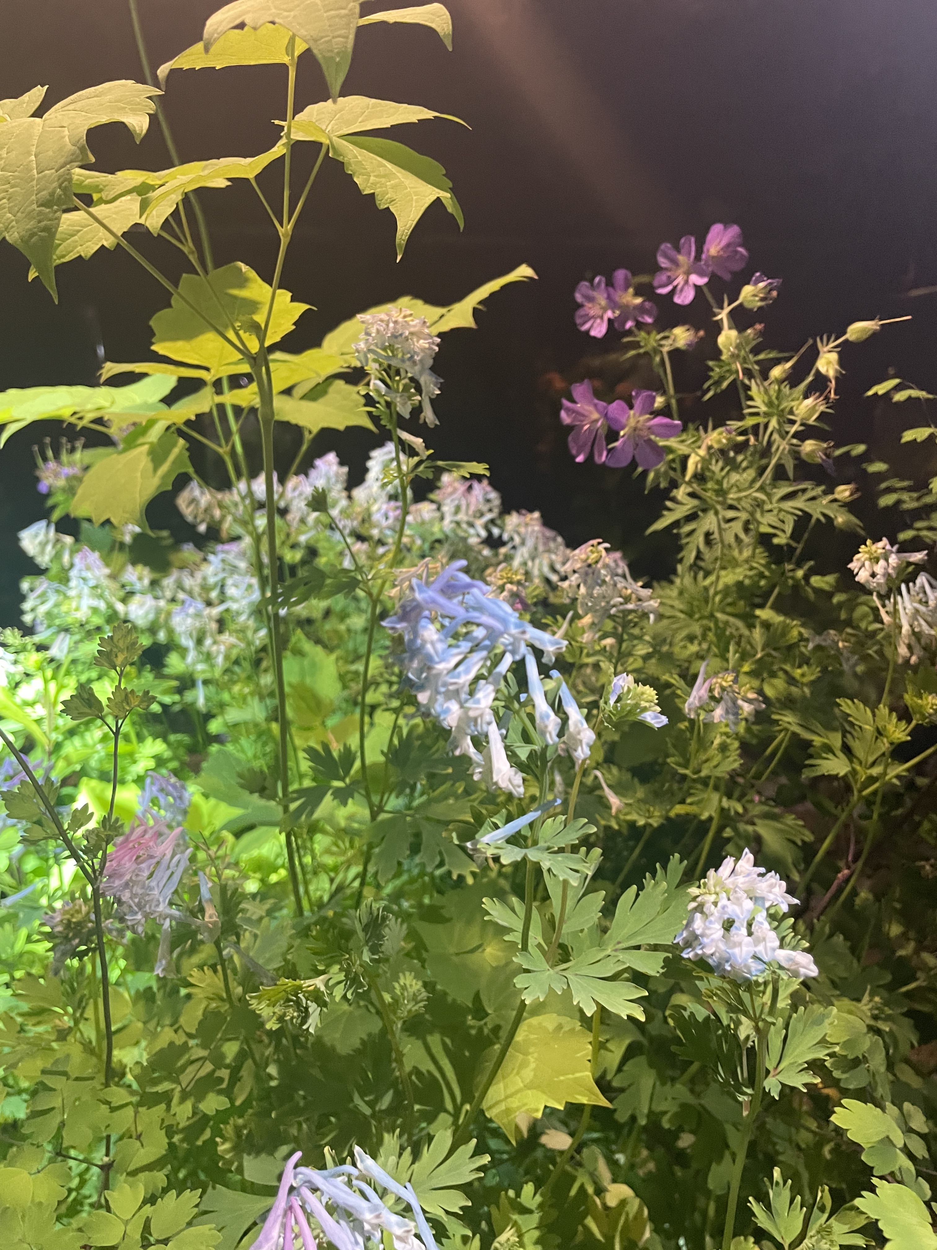 亚当如数家珍的和我们介绍着每一座花园里的植物。暖色调花房里的树蕨,高山紫堇蓝色克雷顿,一种翩跹的水生鸢尾,岩石花园上的各种白头翁薰衣草鼠尾草等等。