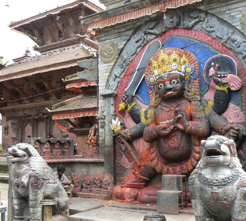 尼泊尔加德满都杜巴广场的6臂大黑天像