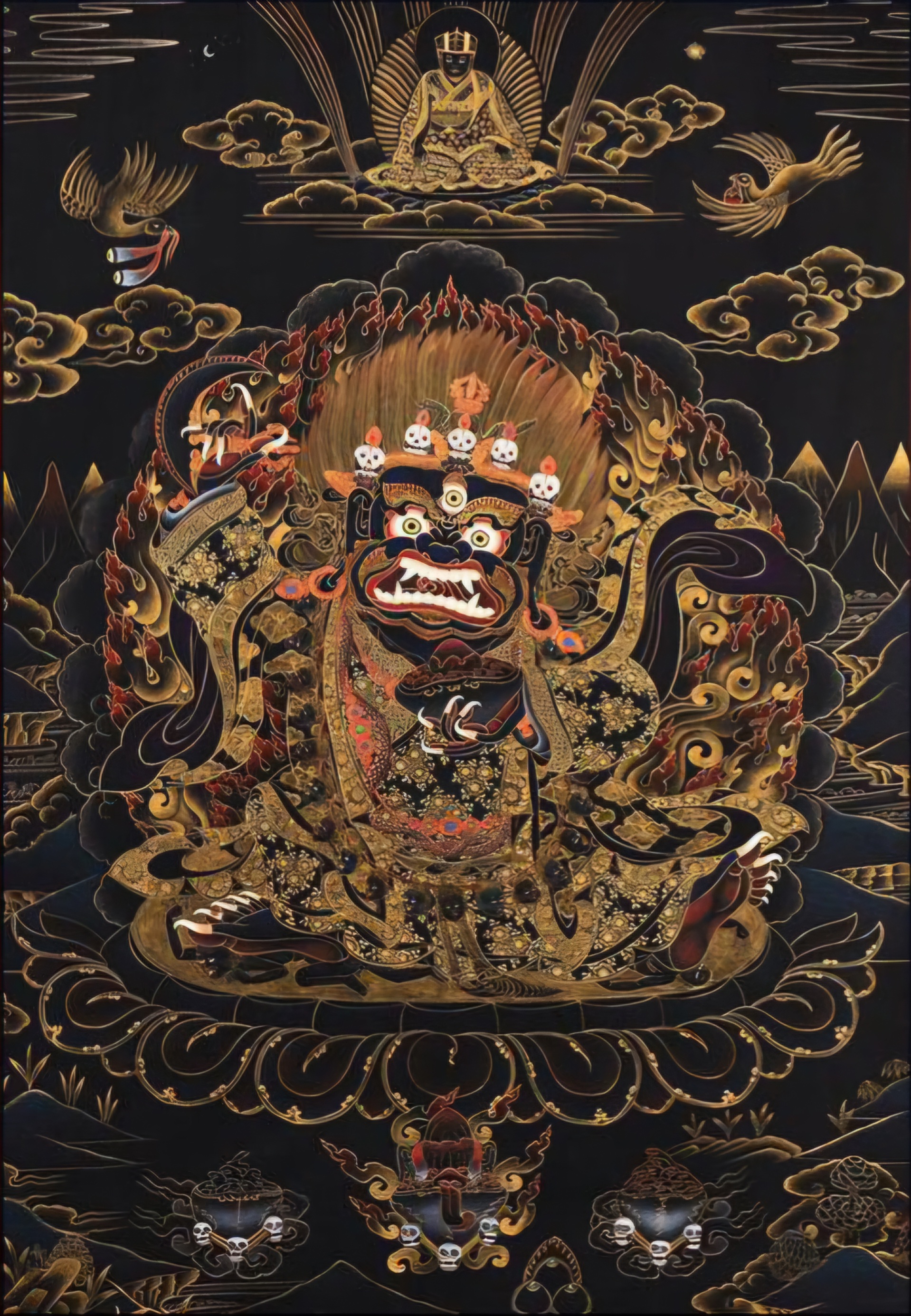 传说中,他身披虎皮,怒目圆睁,手持骷髅杖,却不是妖魔,而是诸佛为护众生而显现的愤怒面容。