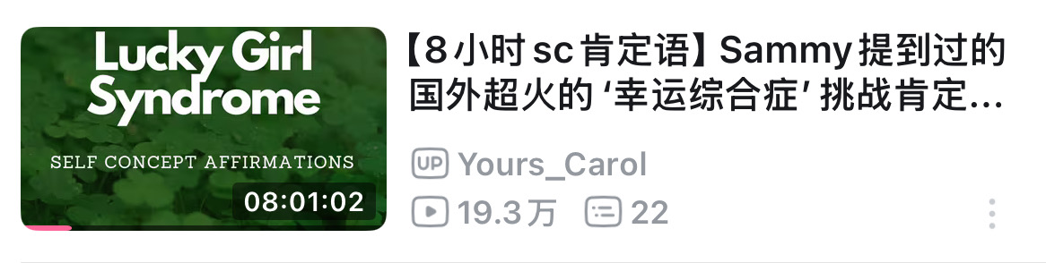 【8小时sc肯定语】Sammy提到过的国外超火的 '幸运综合症'挑战肯定语音频 ^
