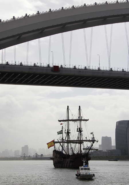 2010年上海世博会,马尼拉大帆船的复制品,“安达鲁西亚号”驶入黄浦江世博园区。