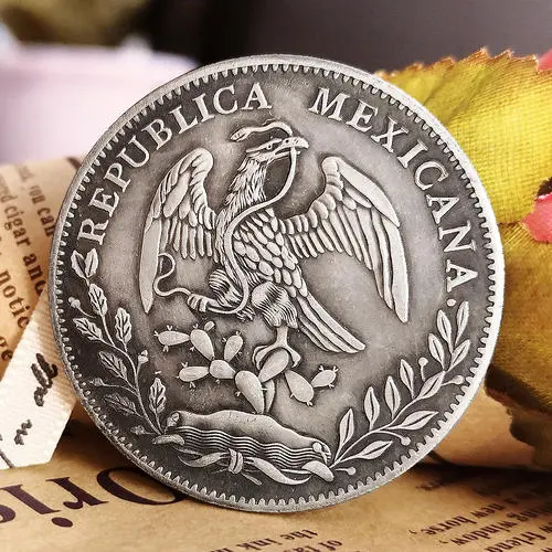 墨西哥独立后铸造,带有墨西哥国徽,在晚清民初通行的“鹰洋”。