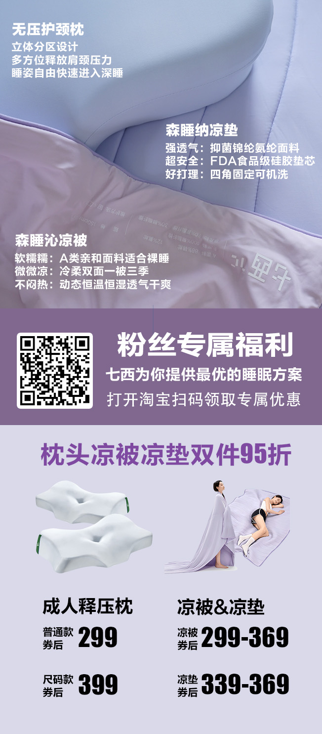 另外感谢「七西」对本期节目的支持。七西的产品我们体验了很久,天天用,已经舒服到离不开了!有兴趣的花卷可以试试:直接复制口令到淘宝47¥ZM2XVEXf9Ap¥ CZ0001/ 或去淘店搜【七西旗舰店 】向客服报暗号「自习室」领取比大促折扣还低的大额优惠券!