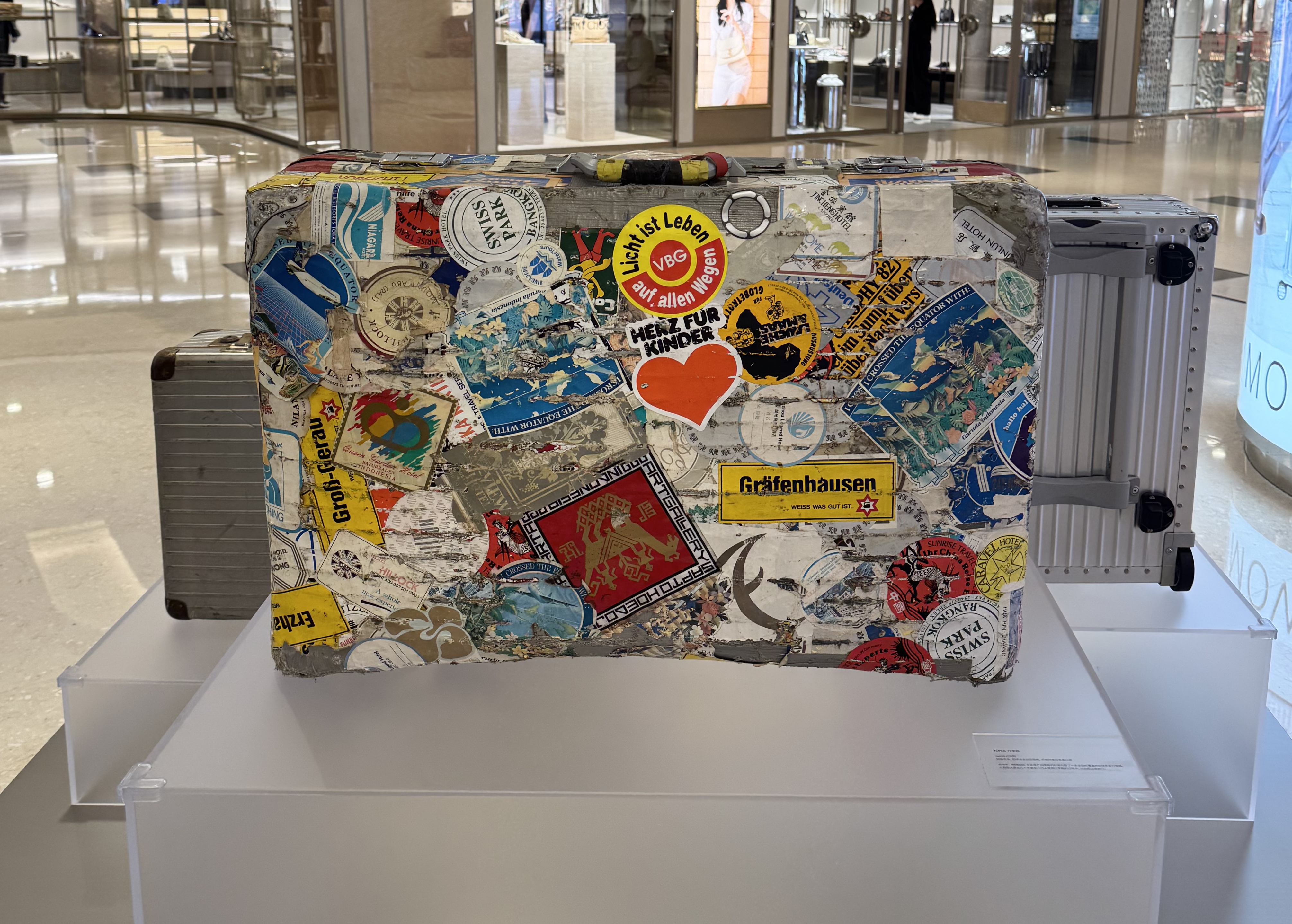 RIMOWA历史馆藏臻品:1955年的复古箱、1976年推出的Tropicana系列全防水行李箱、1980年代贴满贴纸的复古行李箱。