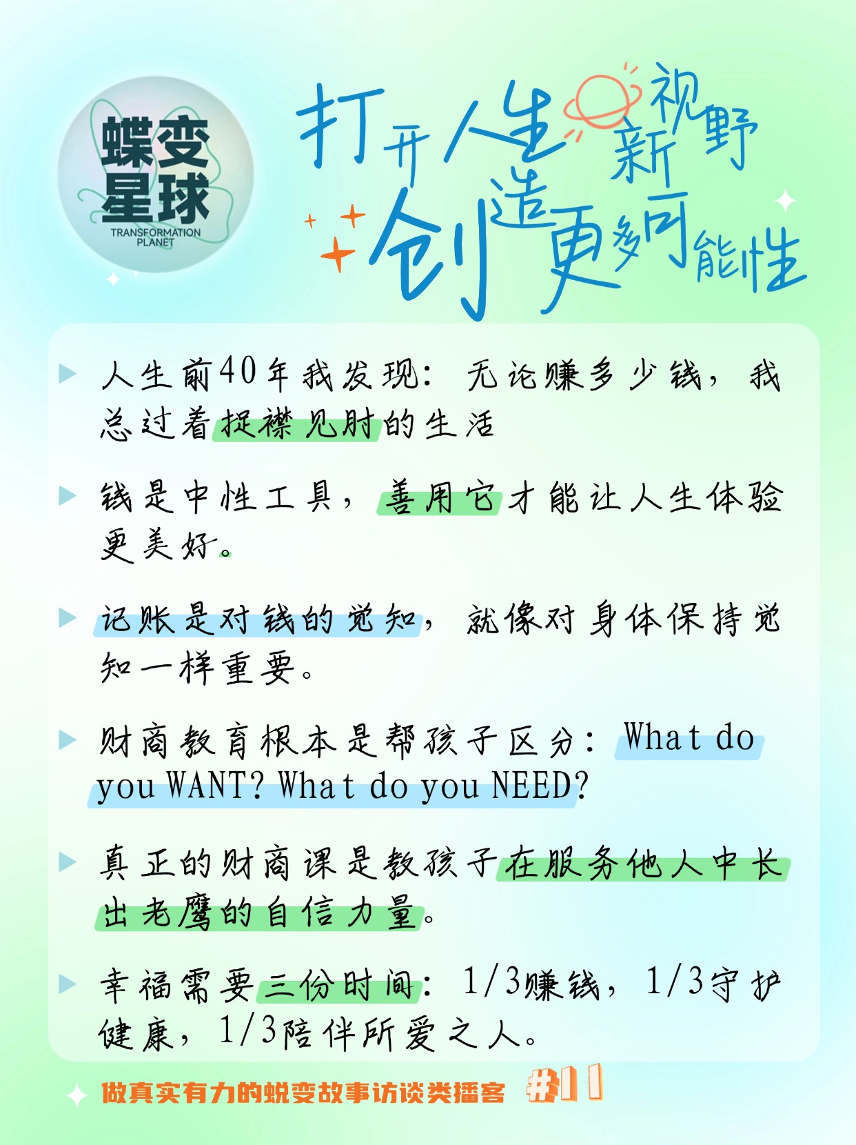 本期《蝶变星球》,听她如何从“月光族”到带上百个家庭破局消费陷阱,用「1/3幸福法则」构建金钱与人生的关系——原来财富自由的起点,是看清Want与Need的距离。