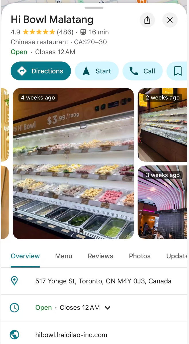 海底捞2025年8月在多伦多市中心开出的全球第一家麻辣烫餐厅(听友风风提供):