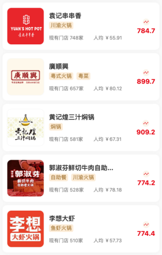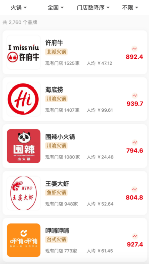 火锅赛道按门店数降序排列: