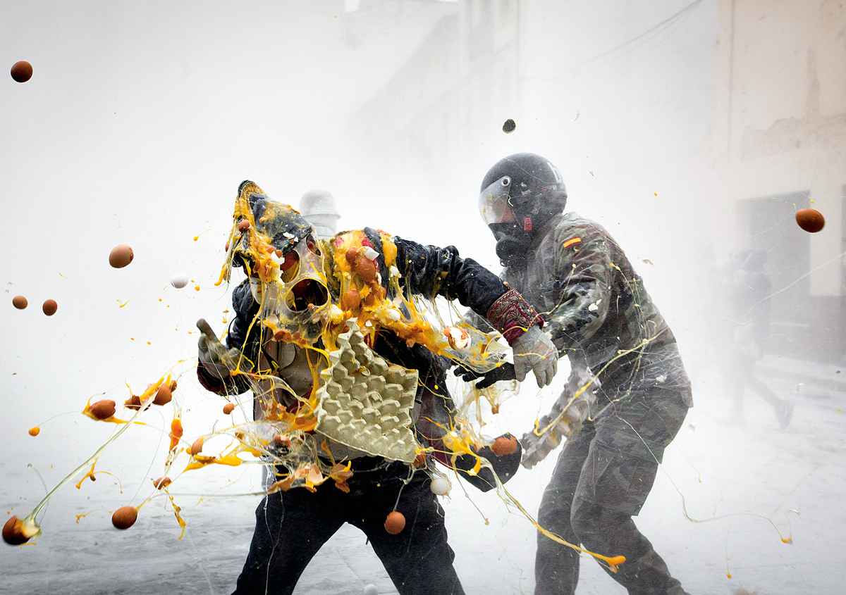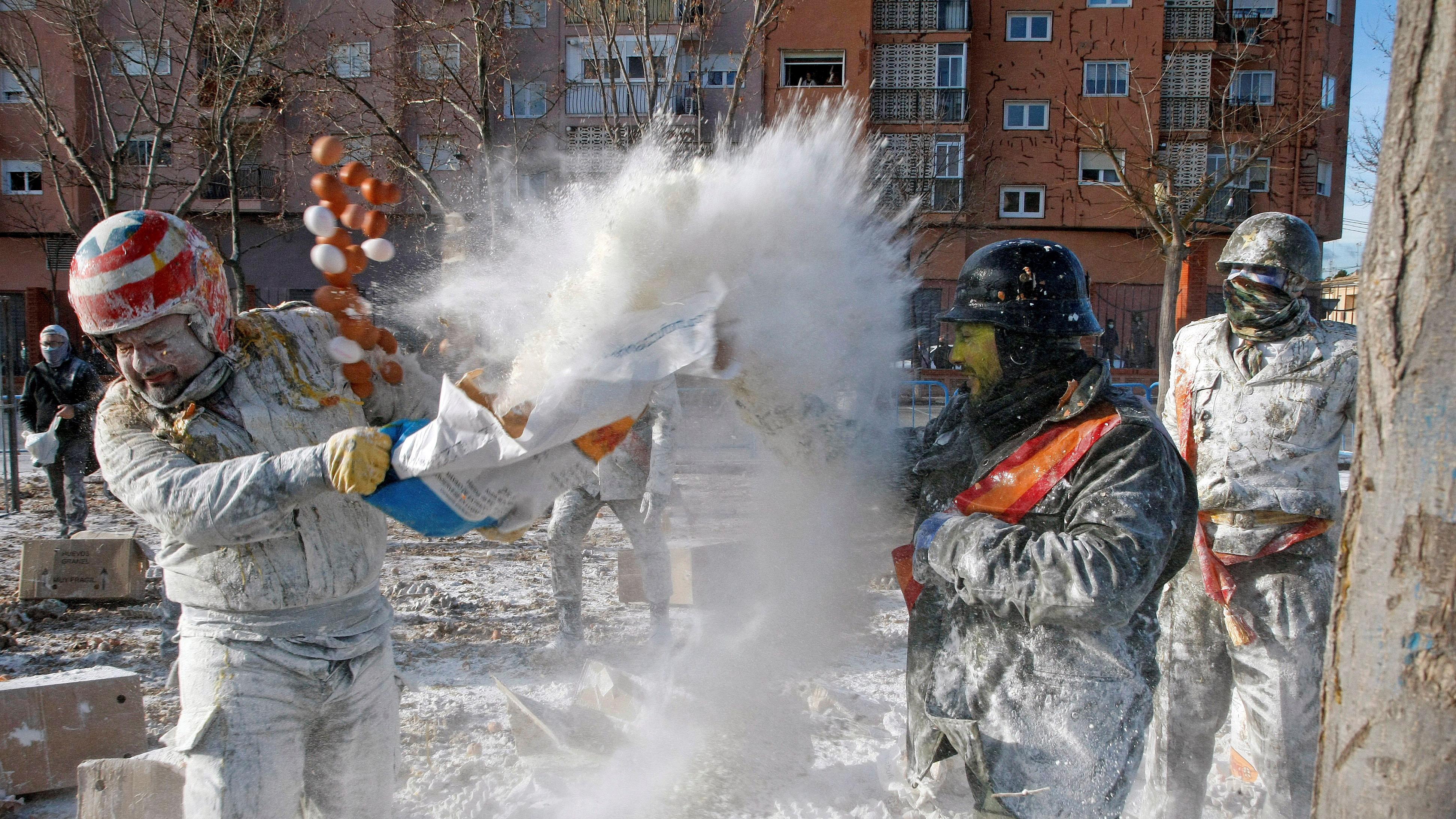 小镇IBI的“面粉人Els Enfarinats”节更具有故事情节和戏剧性,“反对派”和“政变者”用面粉和鸡蛋互相攻击。