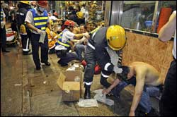 2008年12月13号,游人如织的旺角西洋菜南街,一瓶强酸从天而降,可是居民和警察没预料到的是,这仅仅只是一个开始...发生第一起案件的源景大厦三起案件发生的地点(红色标记处),周围遍布商业和居民楼。当时消防员救助伤者的画面