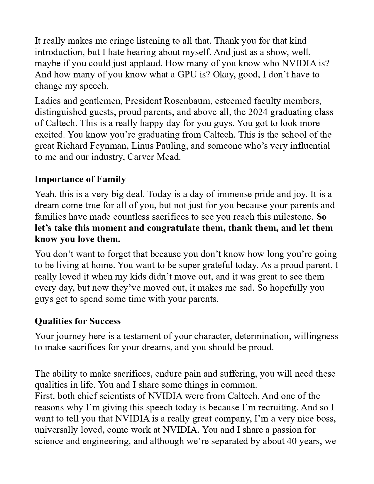 NVIDIA's CEO Jensen Huang's Graduation Ceremony Speech at Caltech on June 14, 2024