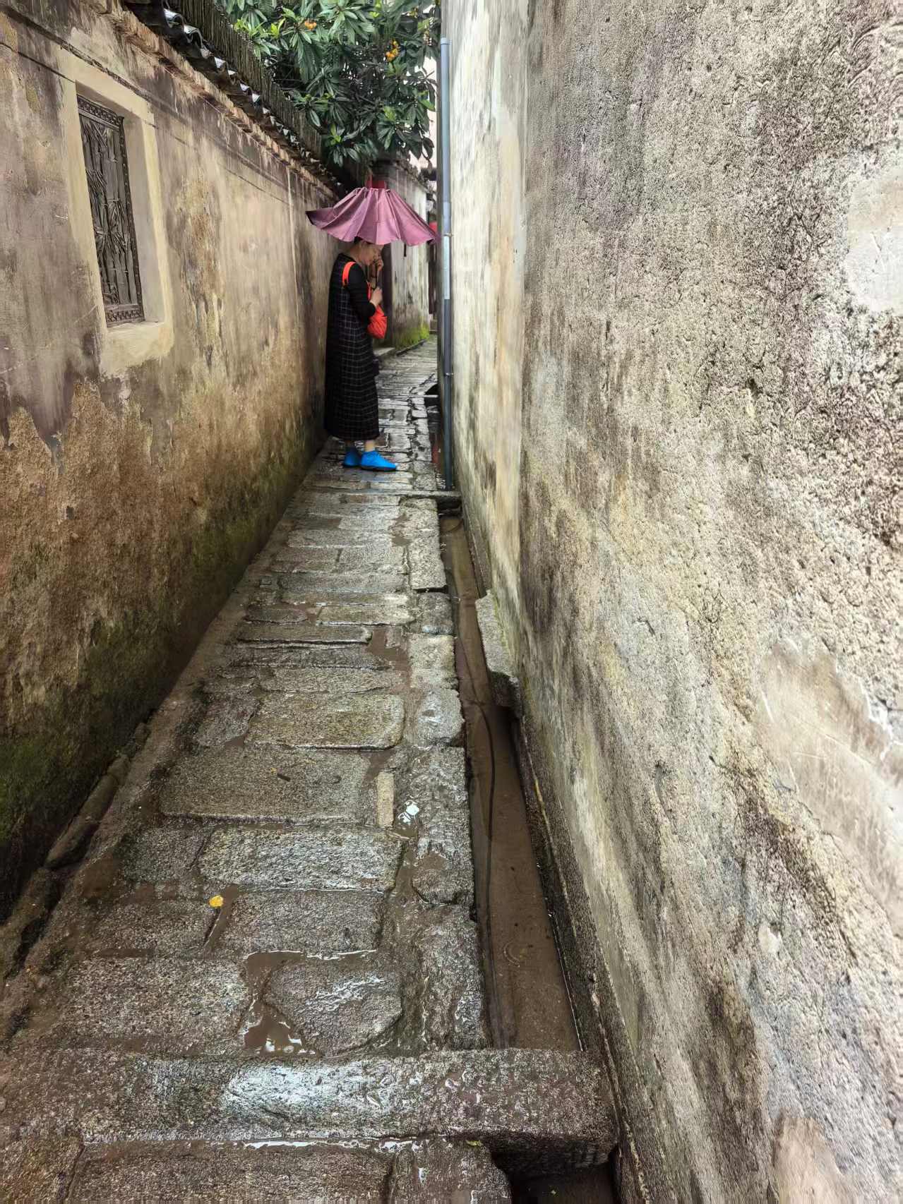(流经呈坎小巷的小溪流,以及上方的谦让石)