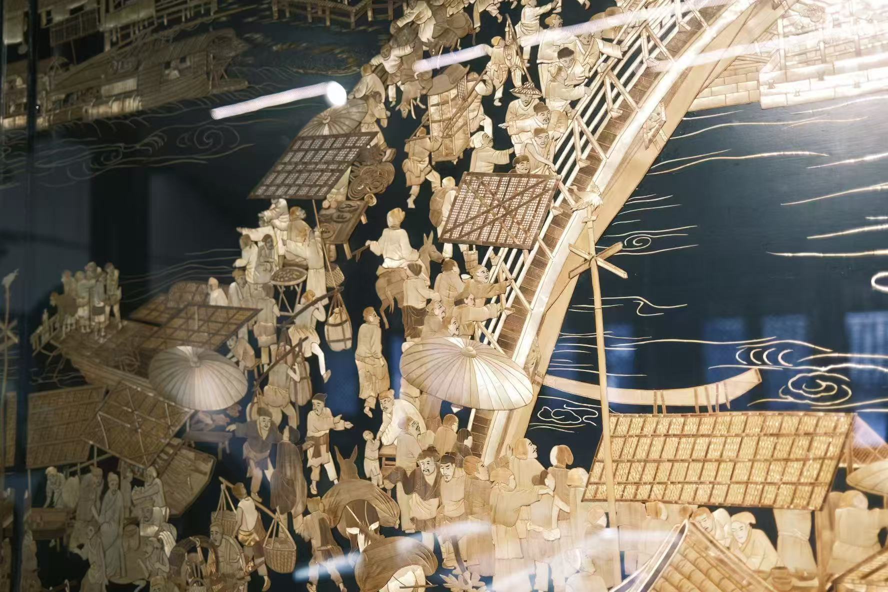 (浦江非遗麦秆画之《清明上河图》局部)