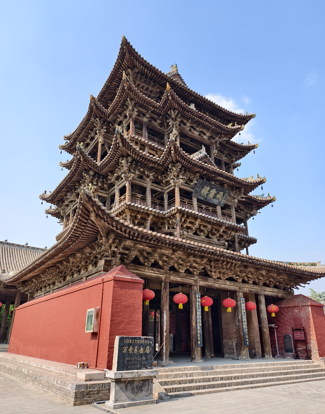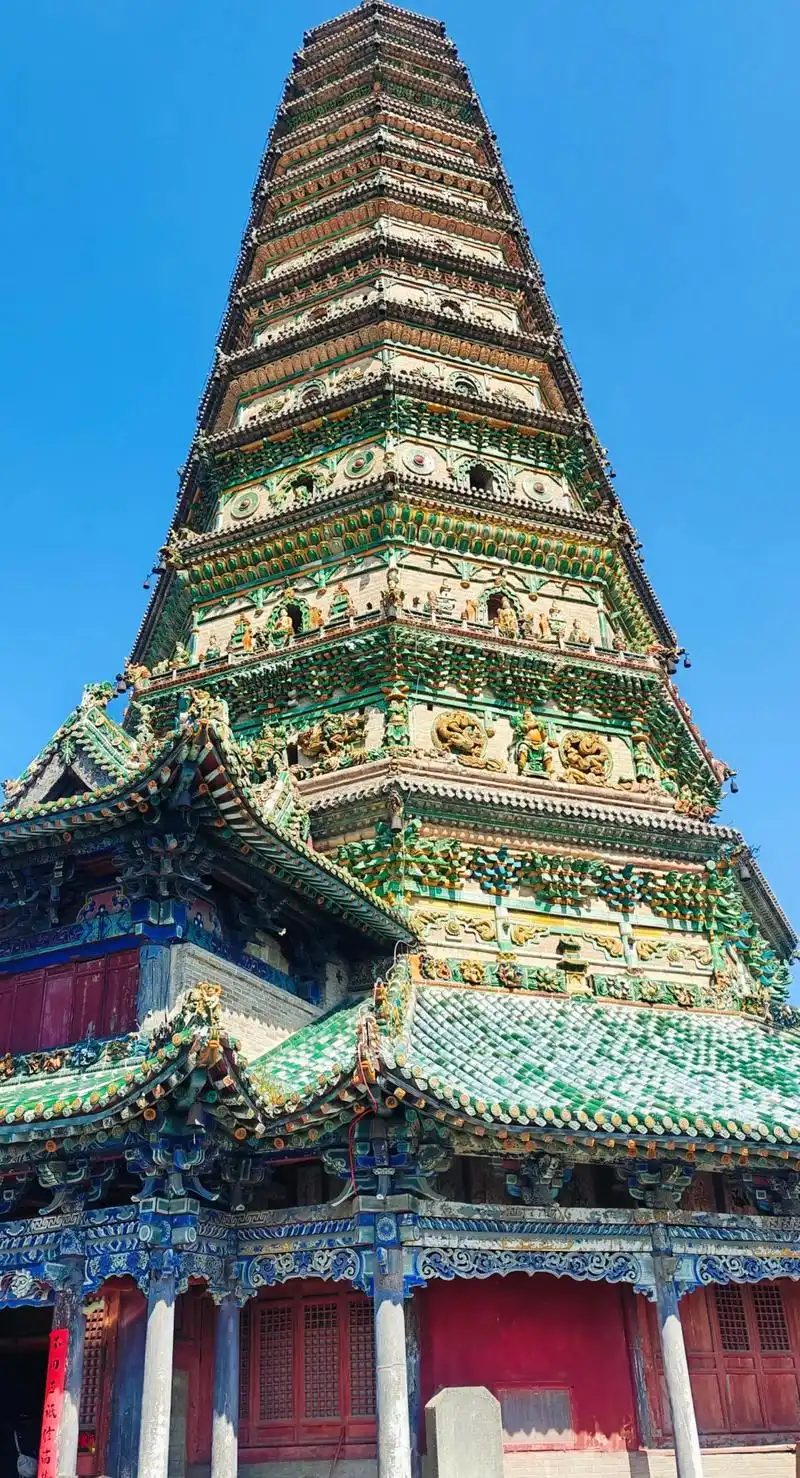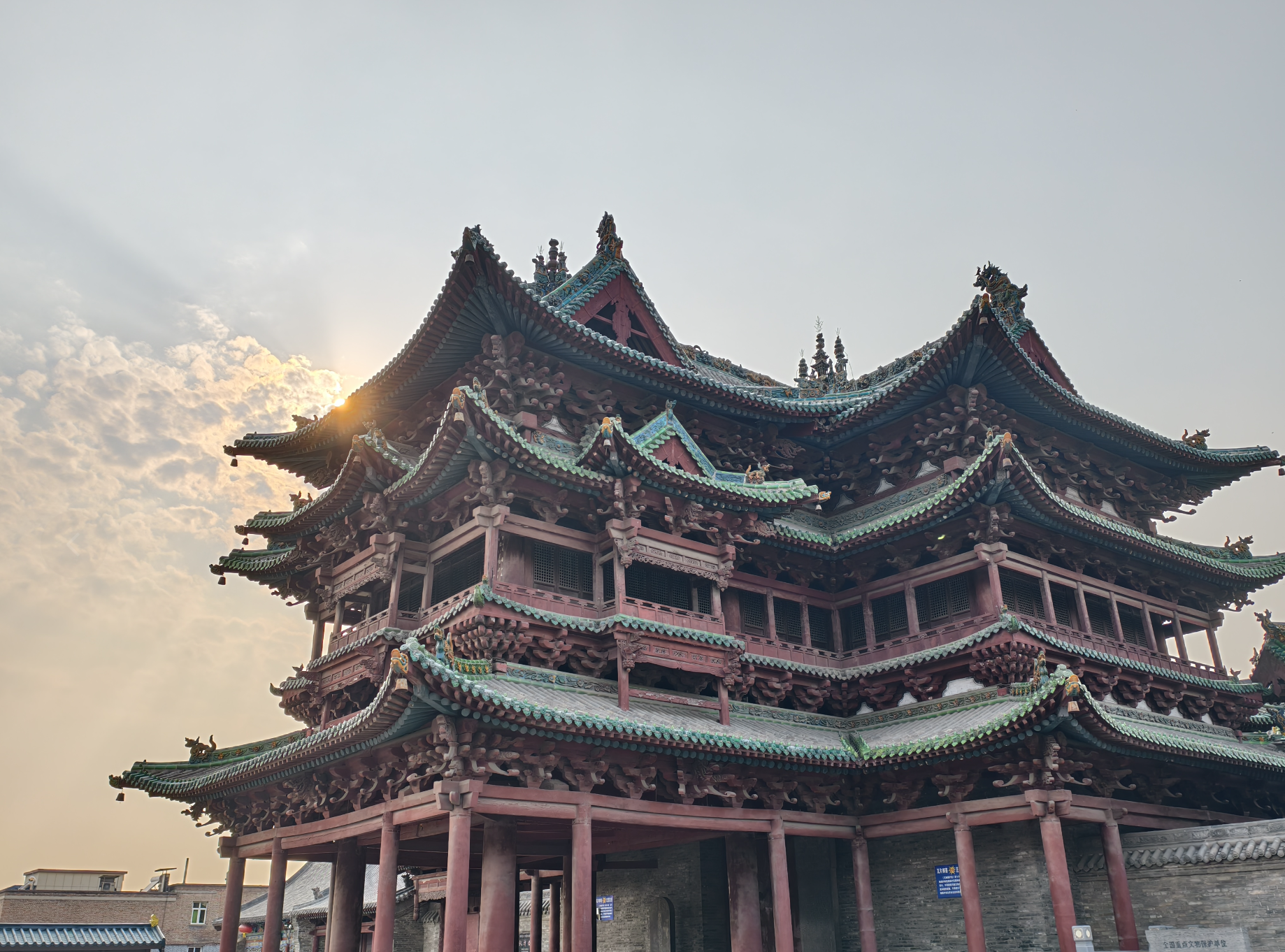 "广胜塔影照琉璃,后土庙瓦耀紫微。小西天外红尘远,一念生时万念灰。莫问真经在何处——琉璃光中,照见彩塑化尘飞!"