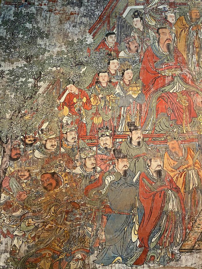 "永乐天官挥玉尘,稷益社火祭虫神。青龙寺里阎罗笑,水神庙前捶丸滚。莫道画匠皆无名,一笔勾出生死门——惊堂木!且看那壁画睁眼窥世人!"