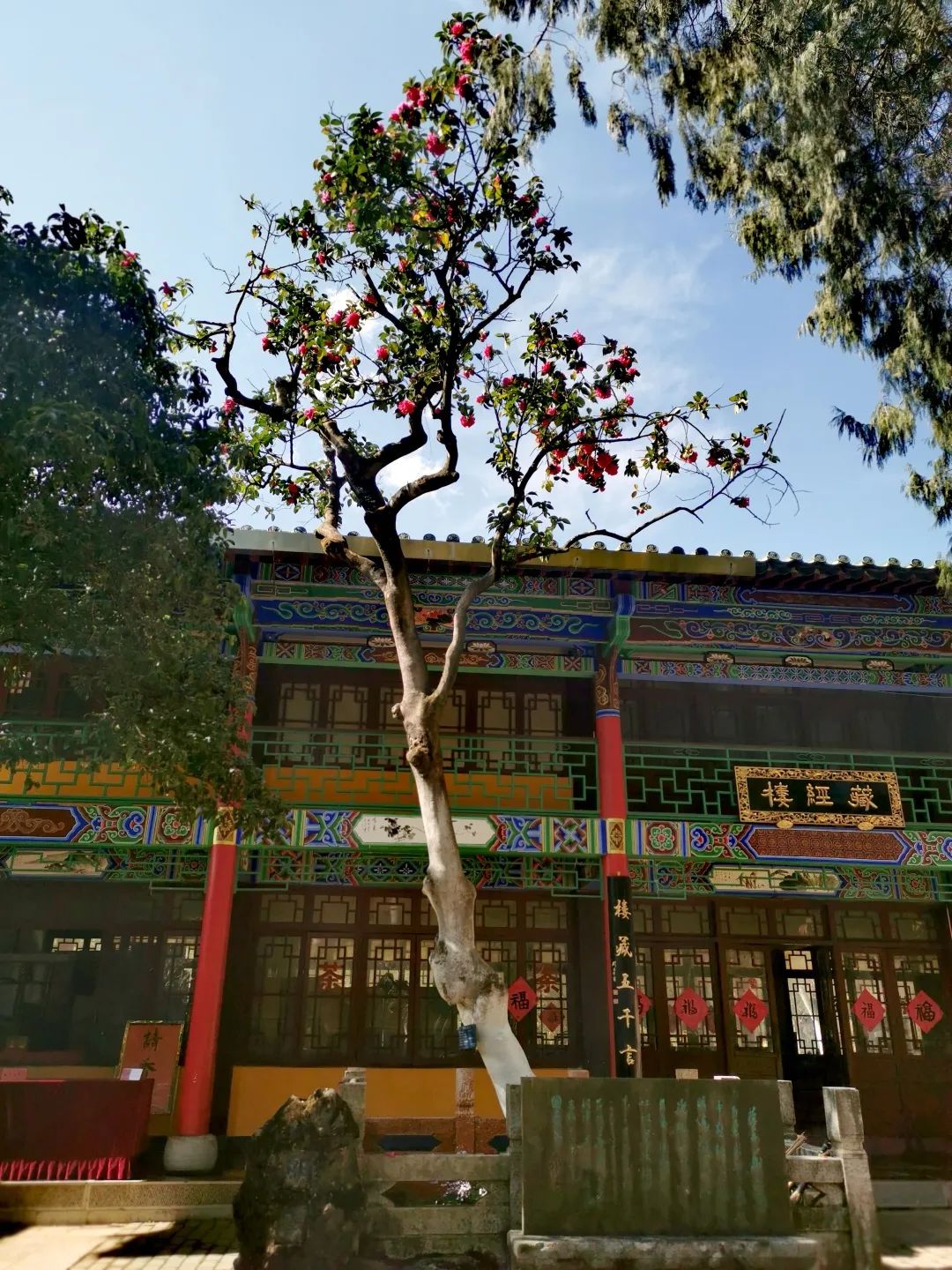 巍宝山400岁的山茶花“照殿红”