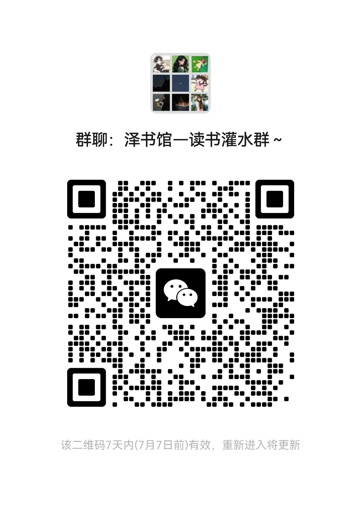 顺便播报~主播的读书社群【泽书馆】已经在运营啦!群内定期每周日晚上进行读书分享~也欢迎大家参与kantwyn精心准备的读书项目~