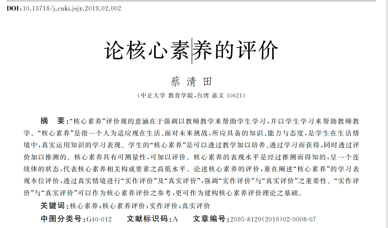文献:《论核心素养评价》
