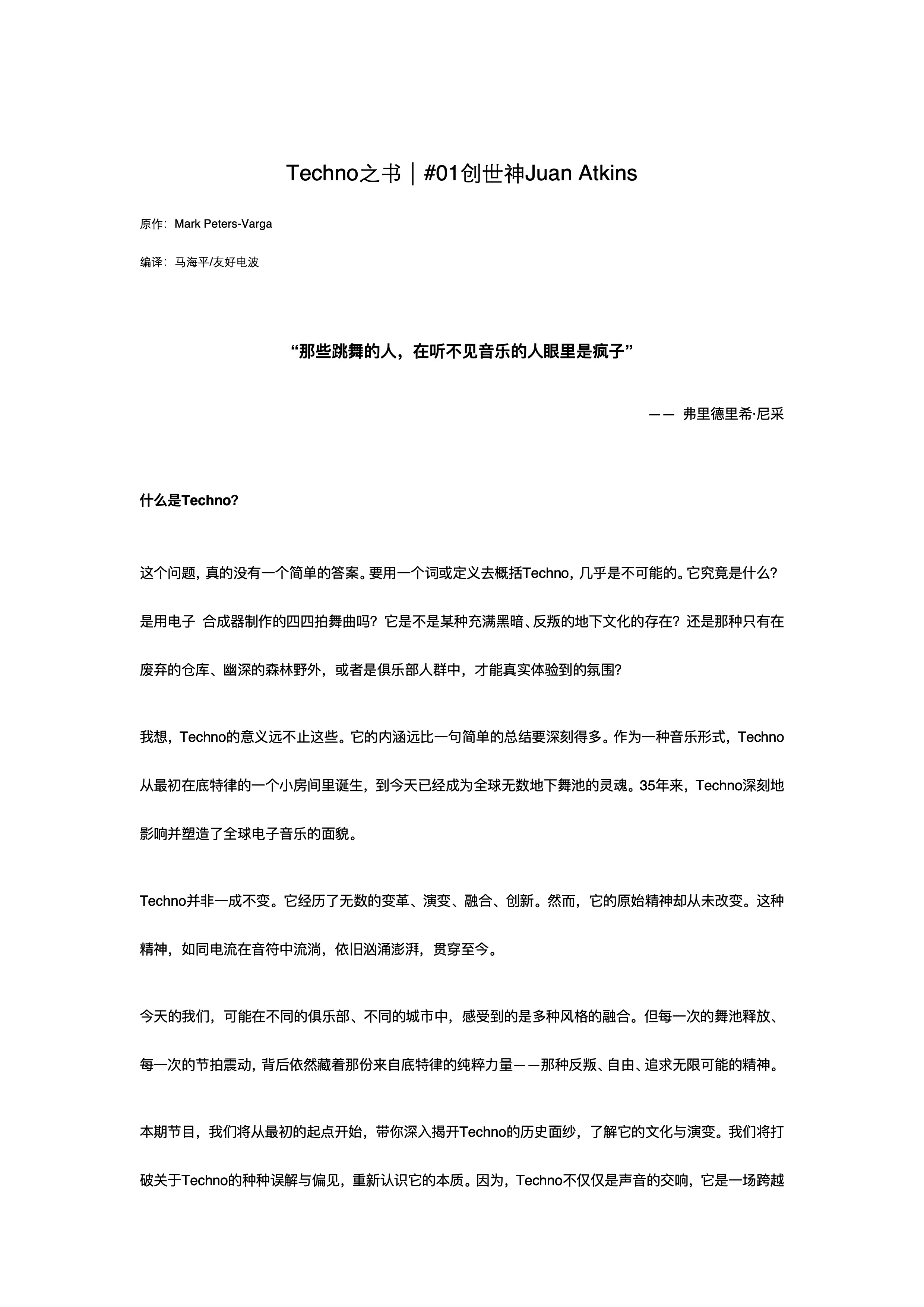 由于字数限制,本期节目的Show Notes文字以图片形式呈现,请下拉阅读。“Techno”之书的文稿之后会在公众号“年轻的制作人和"偏移电波“发布,敬请关注!