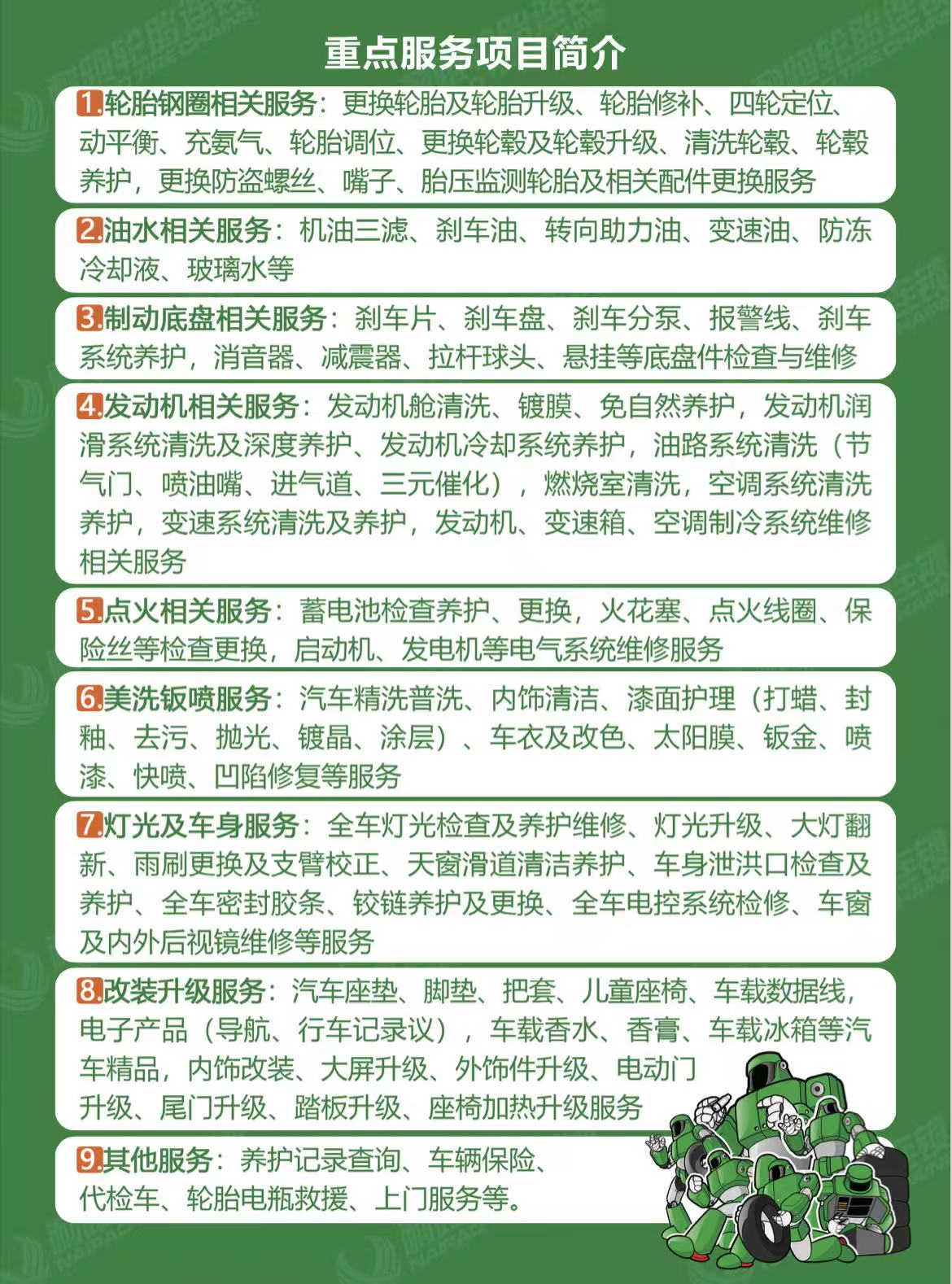 耐跑风雨无阻,节假日无休,坚守岗位守候每位客户的出行安全,肩负行业赋予的奉献精神和社会责任。耐跑"轮胎+配件+免费故障诊断+服务"的核心理念,满足您全方位需求,为您提供综合高效的一站式汽车维修养护服务,为每位车主保驾护航,更显耐跑专业。选择耐跑,我们用心您安心!
