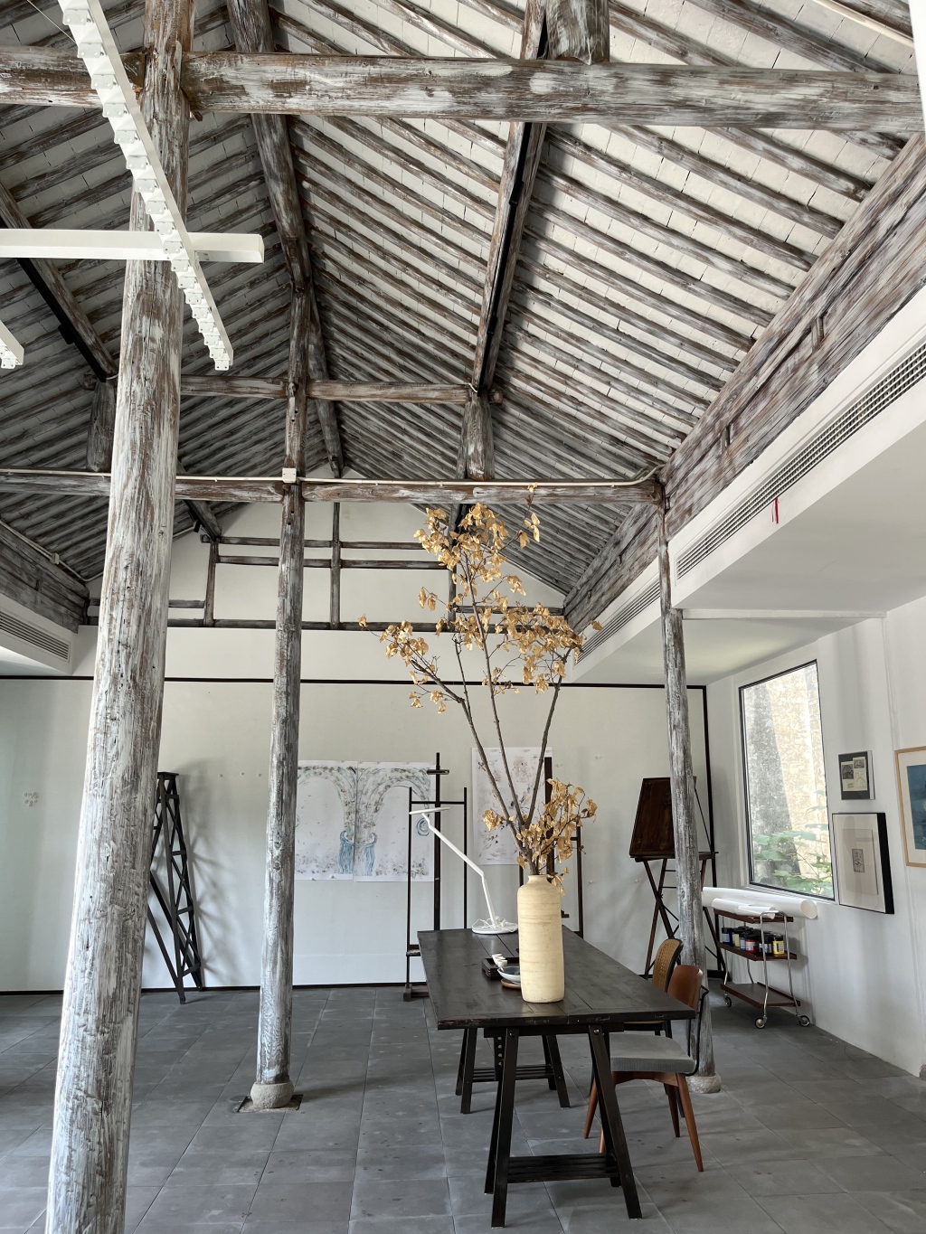 春节期间的黎里古镇也还是有些冷清,不用花功夫就在河边找到了金家老宅,半米宽的弄堂左手边是金家废弃多年的祖宅,右手边还有住家。院子里杂草丛生只有一棵老树还矗立着努力探出墙外,走在杂草间会担心踩到老金讲过的赤练蛇故事。幸好厅堂保存完整,格局和梁木雕纹都是以前大户人家的派头。