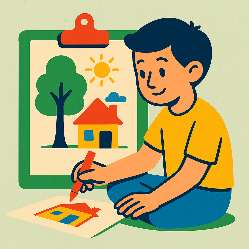 00:25 什么是房树人测试(HTP Test)?一种绘画心理投射测验:请画一幅包含房、树、人的画,其他细节自由发挥——通过绘画表达潜意识冲突与人格特质,房、树、人三者的空间关系反映个体与环境互动模式。