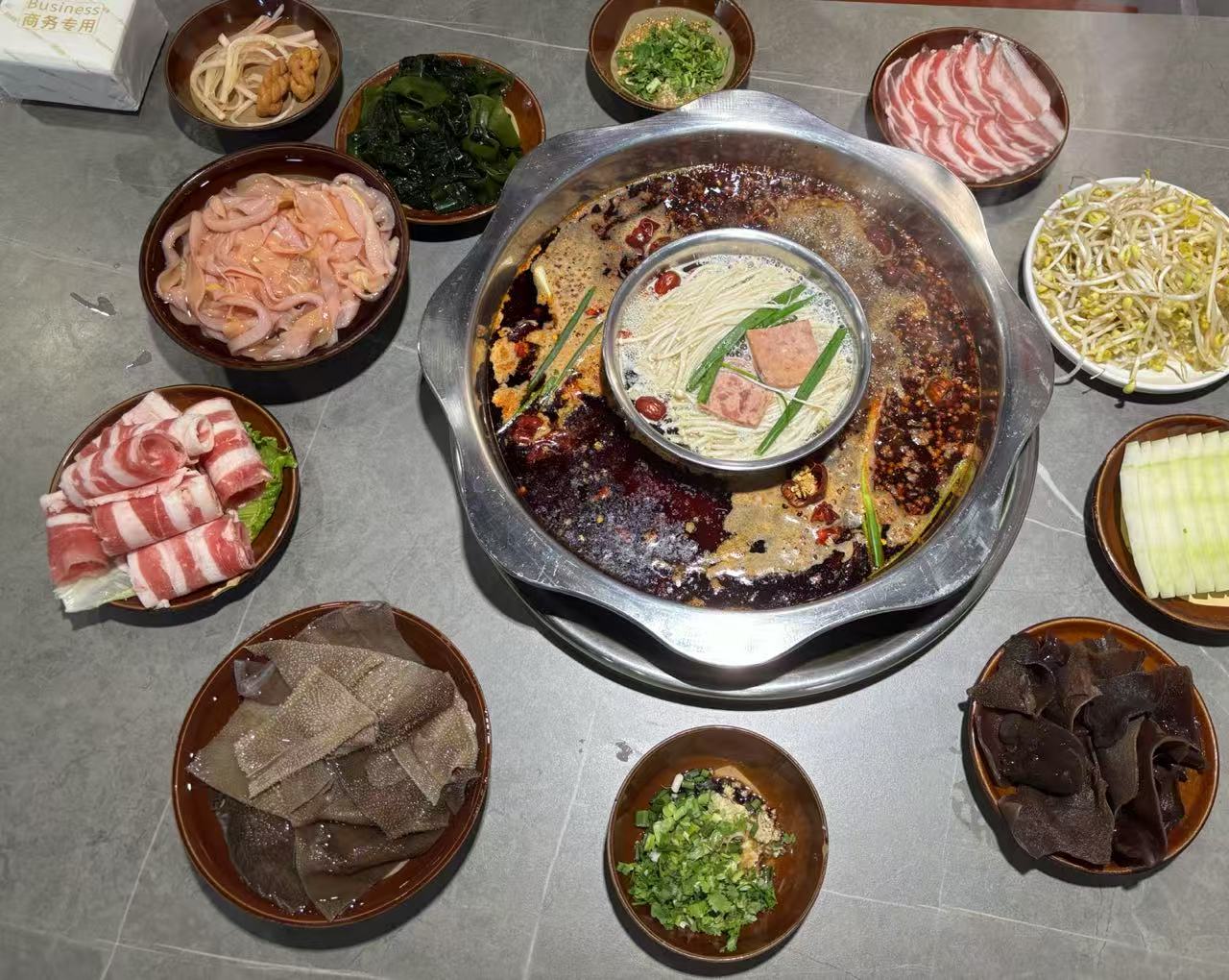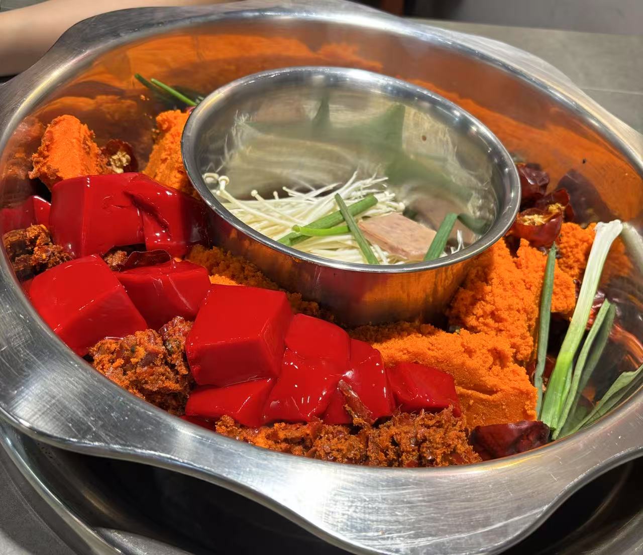 图二:倒了鸭血的火锅底料,可以看出火锅底料的颗粒感吗?