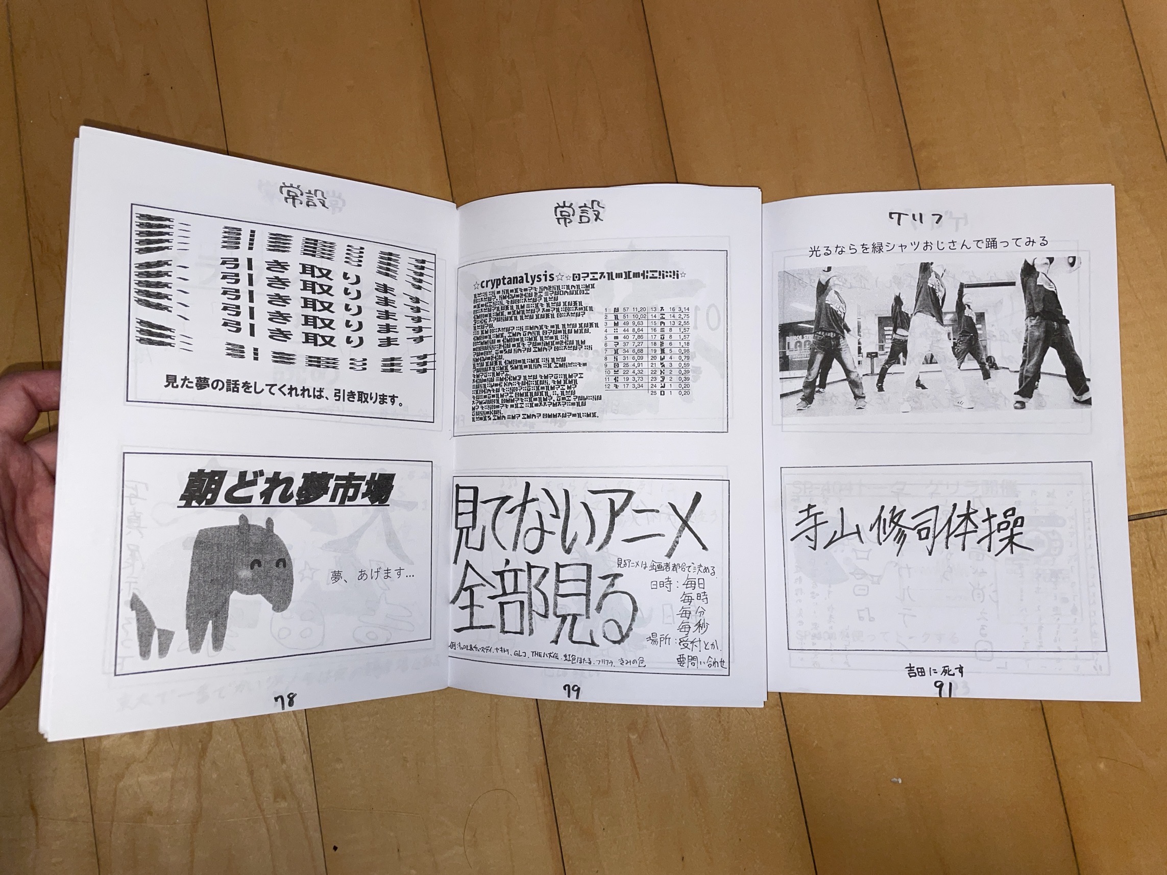 《吉田寮通信》 “寺山修司体操”(右下)和“把所有漫画看完”(中下)