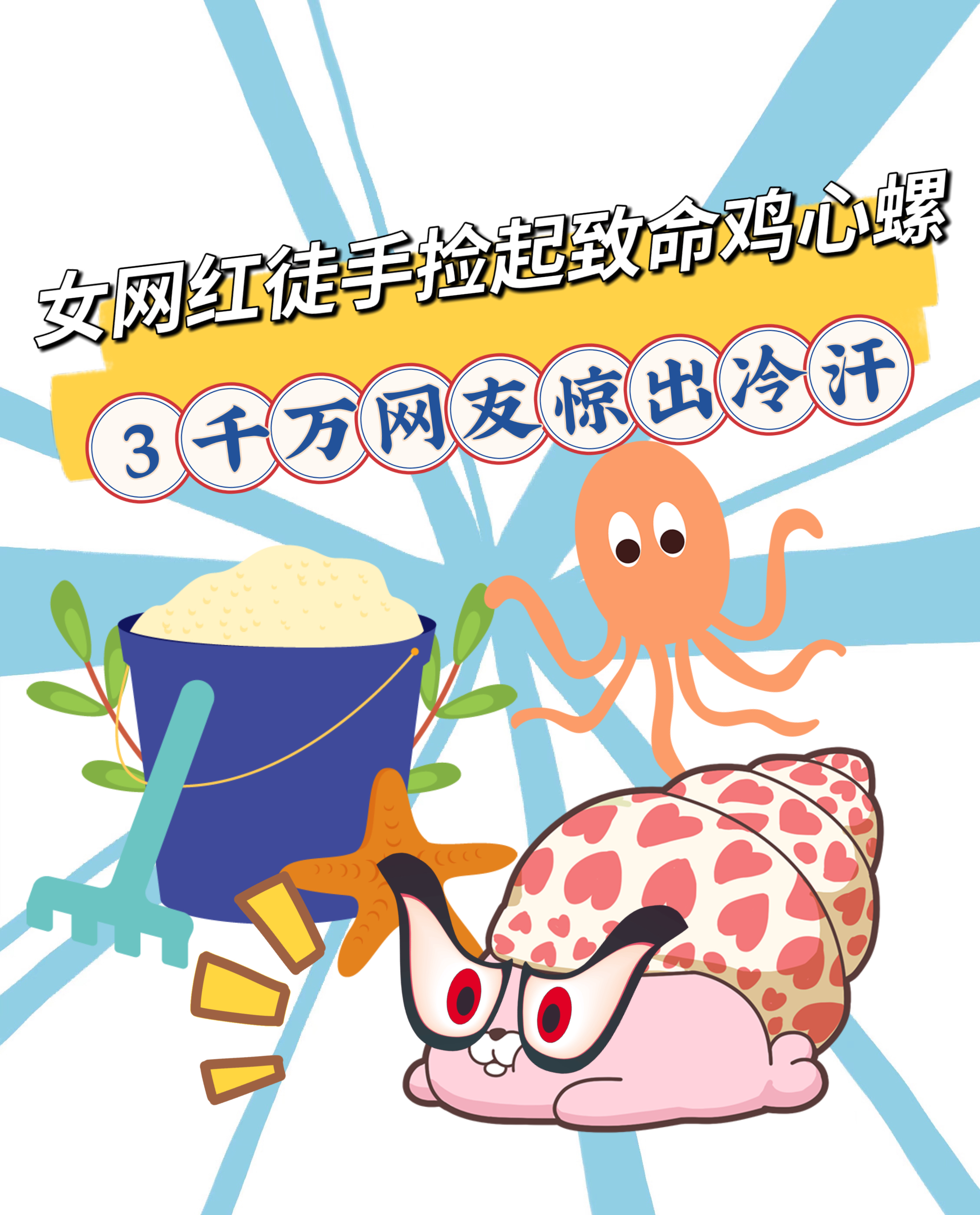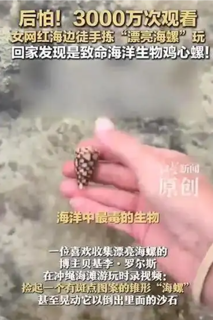 外国女网红在冲绳海滩徒手捡“鸡心螺”,3千万网友惊出冷汗!和蓝环章鱼一样都有剧毒