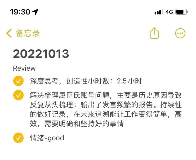 -每日深度思考,创造性延展事项或问题解决的深度以及所花费的时间