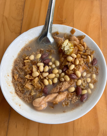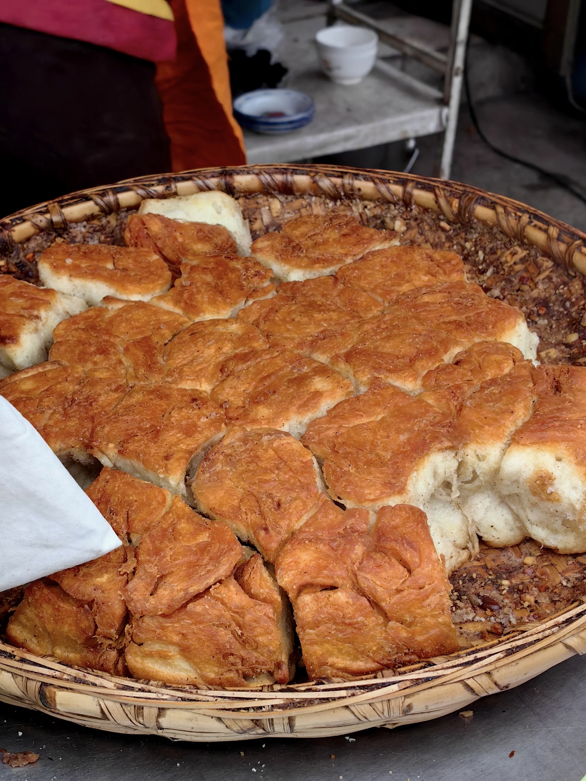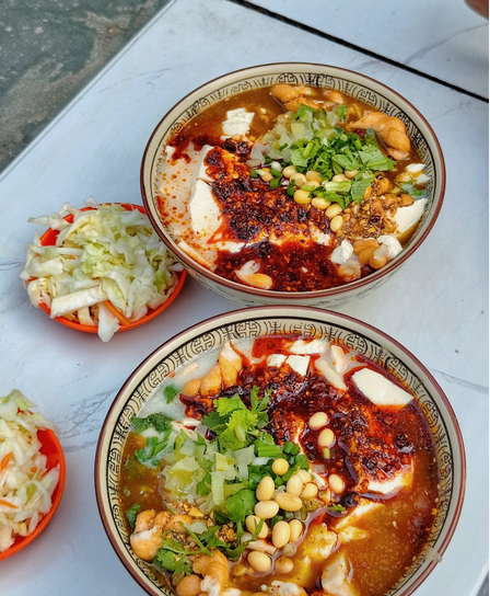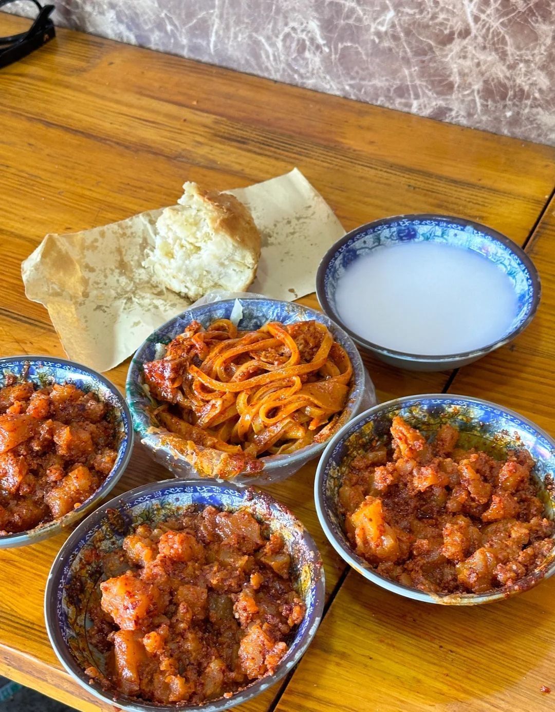 天水早餐标配,呱呱、面皮、猪油盒、右上角是杏茶