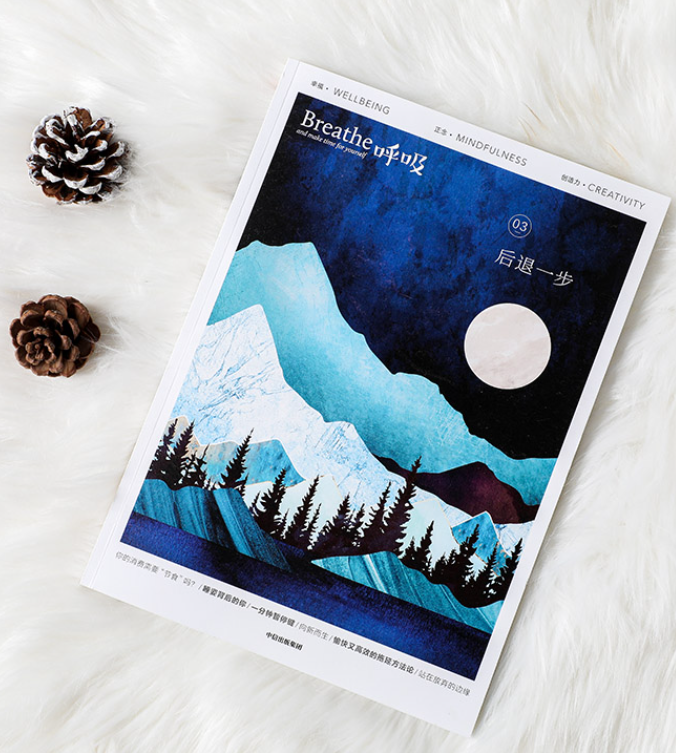 —《呼吸》是一本英国知名的正念生活杂志,向读者传达的核心理念是:在焦虑的日常生活留出一点“呼吸”的空间,找寻从日常压力中解脱出来的方法(Breathe and make time for yourself)。本杂志中文版由中信出版社出版,主编是李松蔚,部分选题内容与一些国内知名心理学机构,如简单心理App等合作,每期深度探讨一个与心理学和正念生活相关的话题。