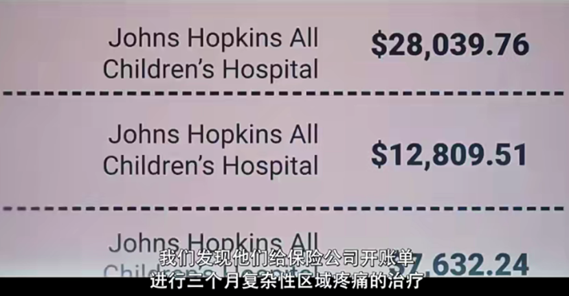 图为医院以“复杂性区域疼痛综合症”治疗为名向玛雅父亲保险公司开具的账单