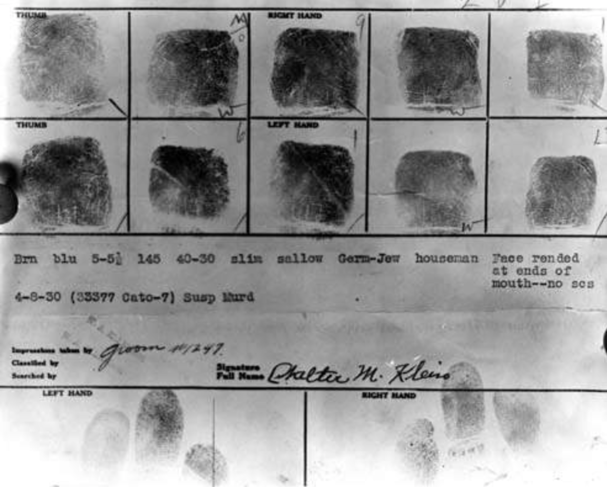 当年Otto Sanhuber留在警局的指纹记录。