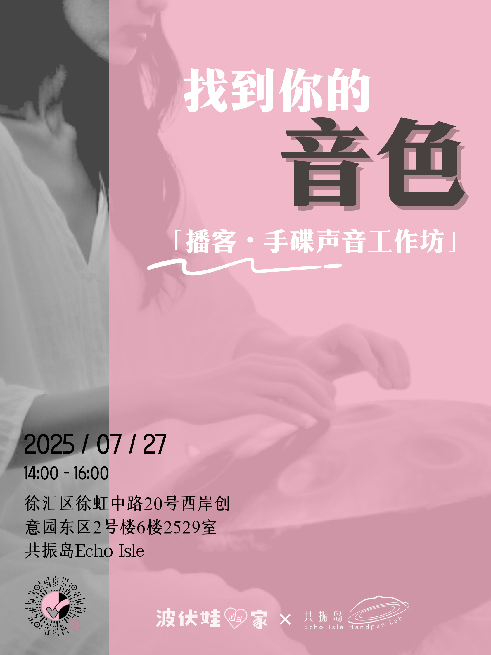 波伏娃的家✖️共振岛将于7月27日下午2-4点,在上海联合举办以“找到你的音色”为主题的播客.手碟声音工作坊,不仅能现场参与用专业播客录制设备的声音故事即兴共创,还能在资深手碟老师带领下开启手碟初体验。感兴趣的小伙伴可以在下方扫码查看详细的活动信息和报名方式,或添加小助手微信bfwdj2024报名,我们也非常期待能有机会和大家在线下见面!