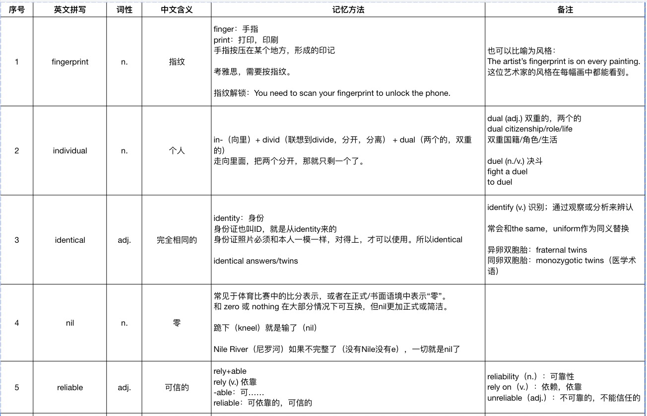 开聊前:打开我们准备的 “单词学习表”,单词拼写+词性+中文释义,一目了然