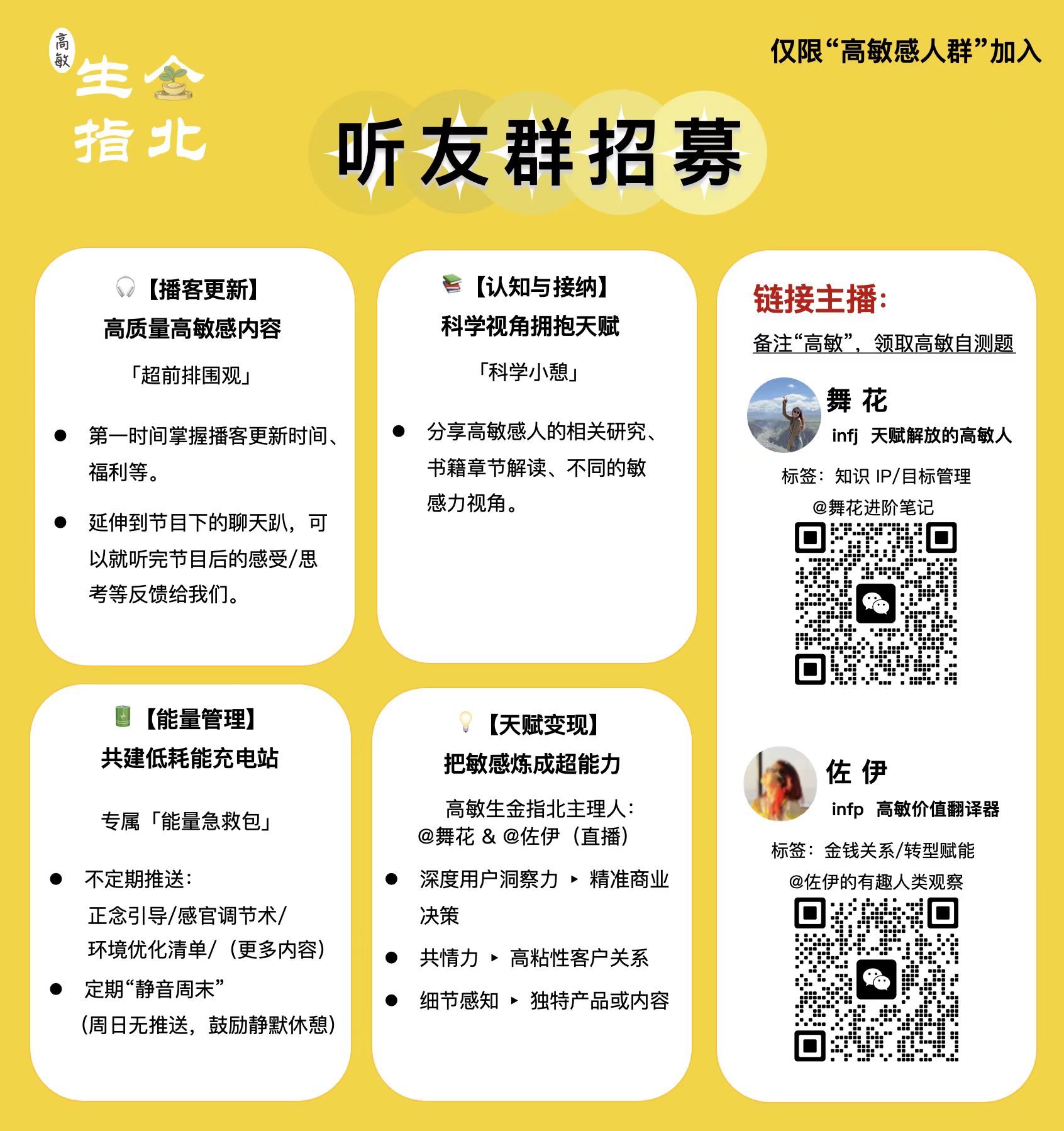 添加主播微信,并完成“高敏人身份自测题”后,就可以进入专为高敏感打造的温暖能量圈啦