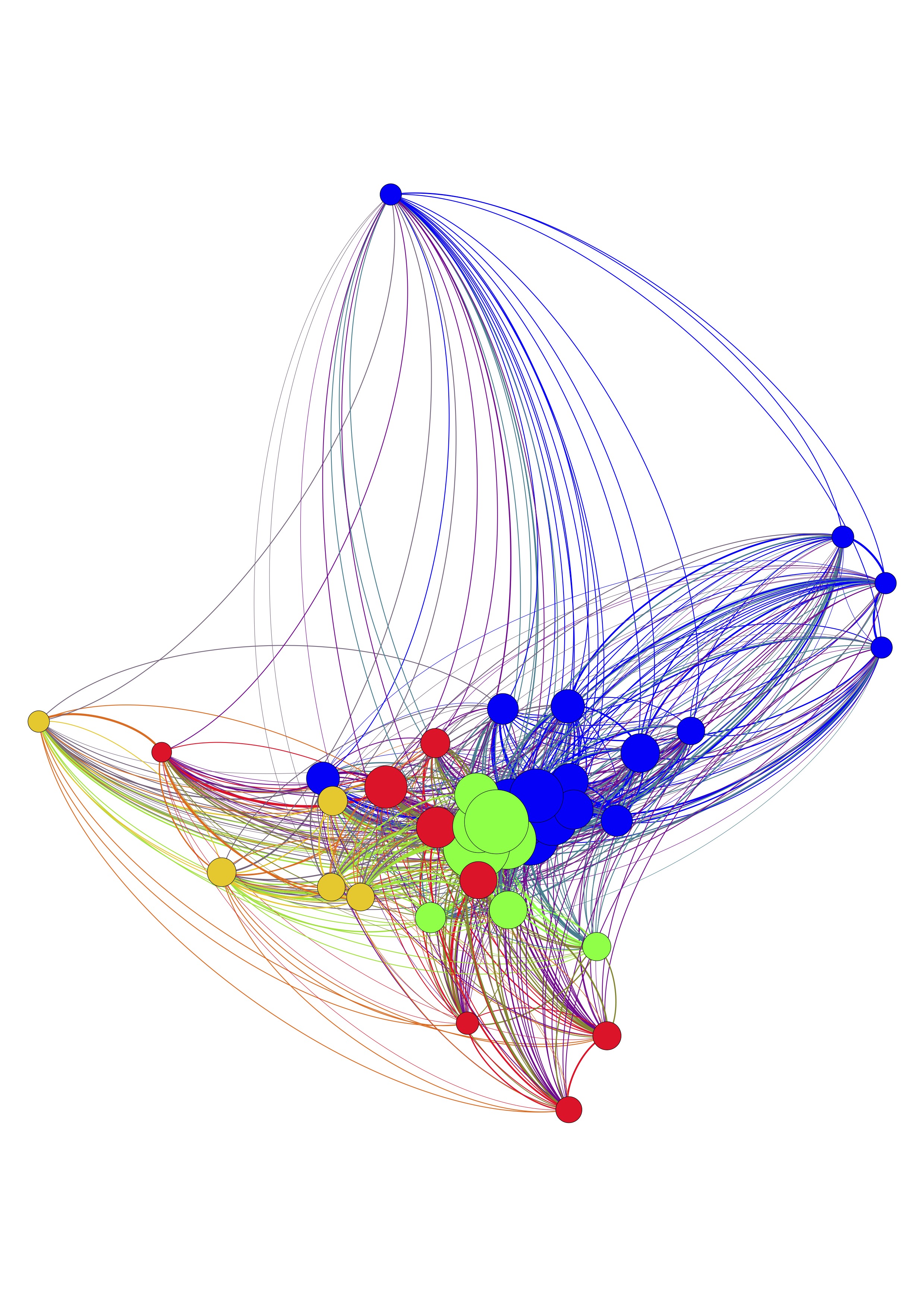 城市更新中的社会关系网示意图,节点代表个人、组织、团体等。