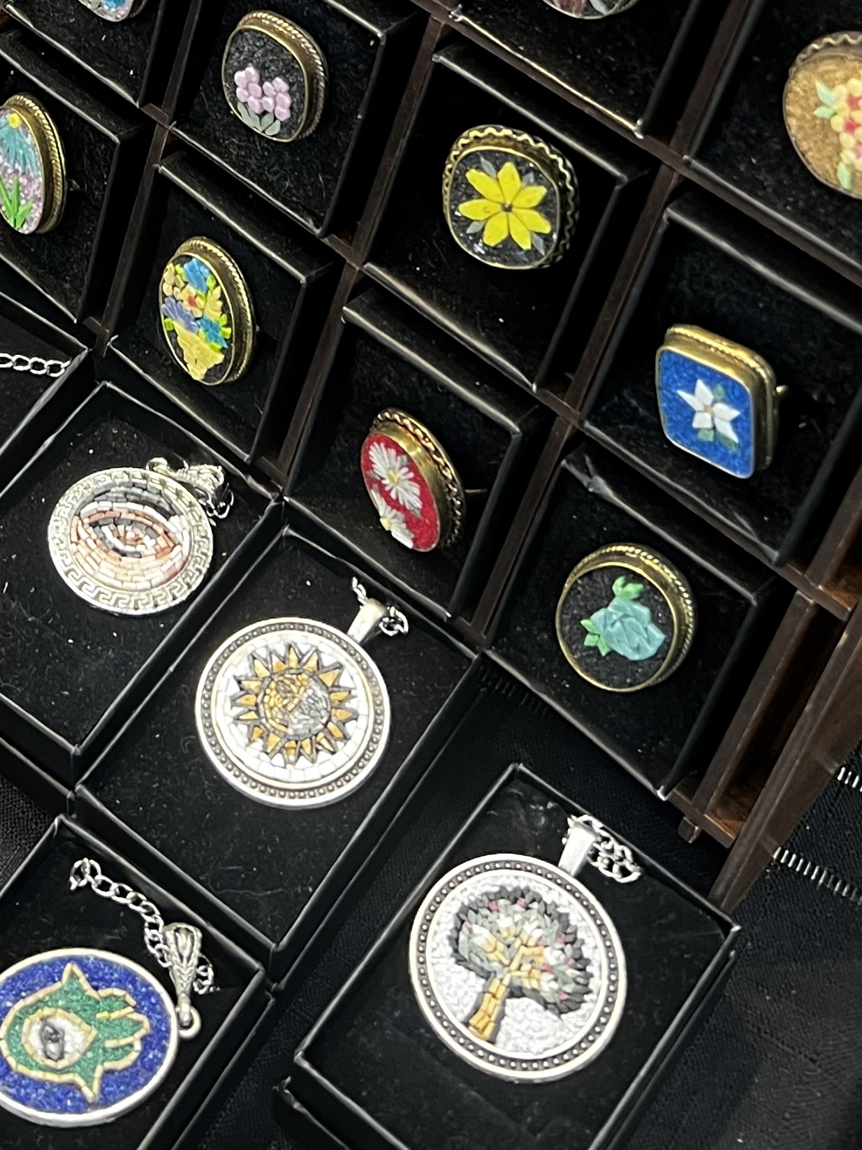 *卡德柯伊周末集市上的迷你马赛克饰品小摊。五彩斑斓、做工精致的迷你马赛克吊坠摆满桌面,其中不少图案都与土耳其的传统与宗教相关,我还看到了土耳其的国鸟白眉歌鸫图案的款式。热情的店主在一旁耐心为我介绍每一种图案的寓意和特色。