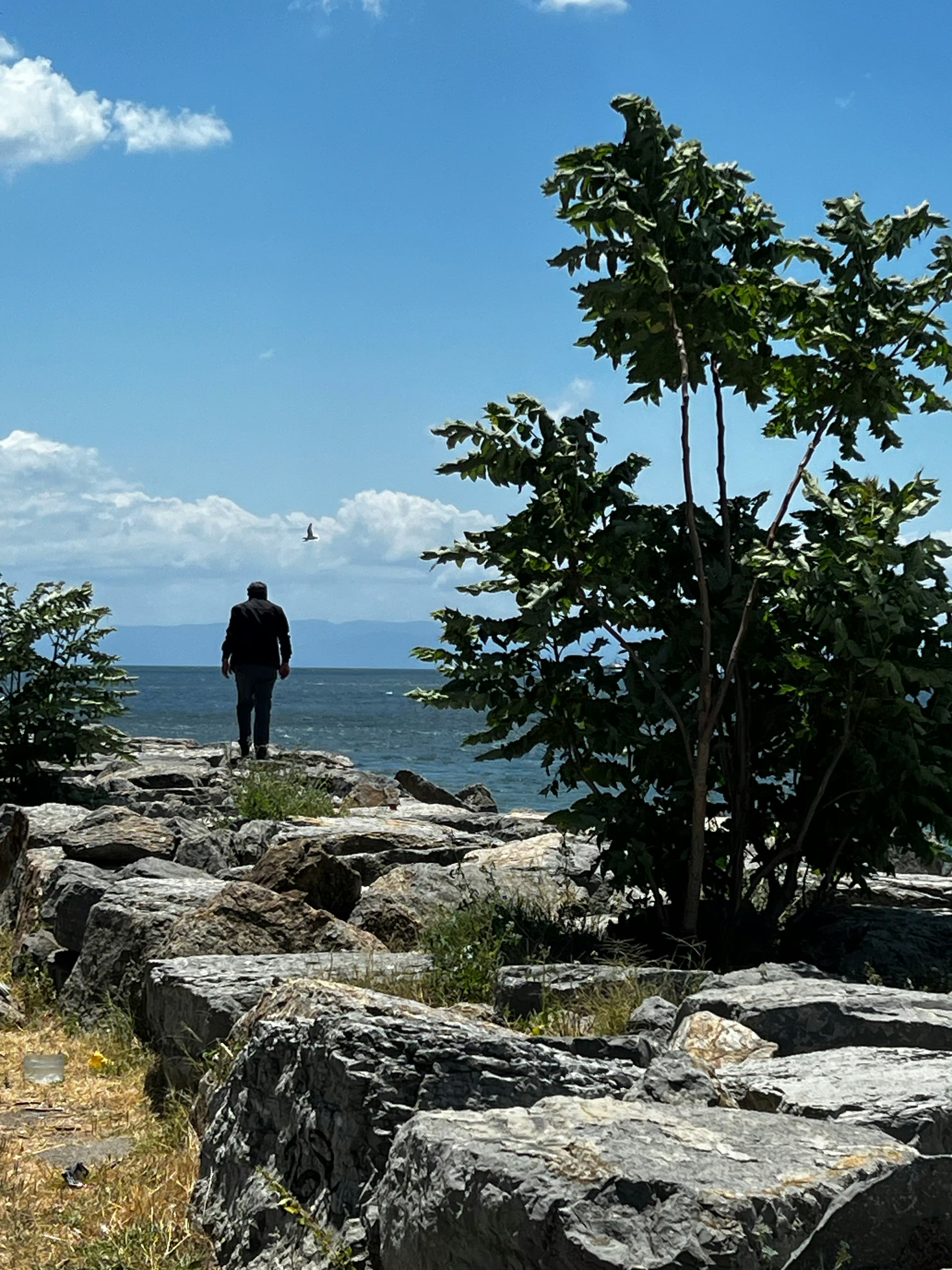 我知道我在讲伊斯坦布尔的这些时间里大多都在讲一个人,那么我就讲他。这个人的存在(presence)与我时刻分享着这座城市,我的思维将他带到我走过的那些路上,在海岸的边上,在彩色的墙壁上,在隐蔽的街角咖啡馆、书店,和黑胶唱片店里,在海鸥的嘴里,鱼的鳍里,合欢树的花香里。我将他的部分框定在卡德柯伊这片小小的分区,因为我与伊斯坦布尔其他的部分还有别的故事。但总体来说,我感到卡德柯伊就像是他本身思想的外化一样。我看过他在社交网路分享的那些词句和图像——它们大多来自这里,某家不具名的小商店,帮忙店主宣传的餐馆,一份旧报纸;数座独立的小剧场,无一不地板墙面漆黑,铁窗框镶嵌着古旧的茶棕色液晶型調光玻璃,几盏错落的聚光灯,白墙之间点缀着红色。我看到他的肢体在这些物体之间伸展,就和婴儿在子宫里做的那样。他在这里是舒适的,楼梯的上面就是熟稔的街道和咖啡馆,楼梯的下面,他的家人和朋友,创作的四方小台,他在那上面在众目睽睽之中把自己剖开,再合上,如同从容地喝下一口烫的茶。其实我挺难想象,一个成年人的生活安全区这样自自身向外成片地延展出去、铺开是怎样一种感觉的。你不仅仅是住在那里,你的建造和探索,圆熟和脆弱,生长和老去,离开和到来,都是在这些熟悉的东西之间进行的,能做到这点的,若非很智慧,就是很柔软,很可能两者兼有之,像鸟在织巢,没有人需要告诉它们该怎么做。他给我掀起他的巢看了其中一角,造成了我对他的不断回想,我想知道那样的生命是感觉怎样的,因为我还从未有过。