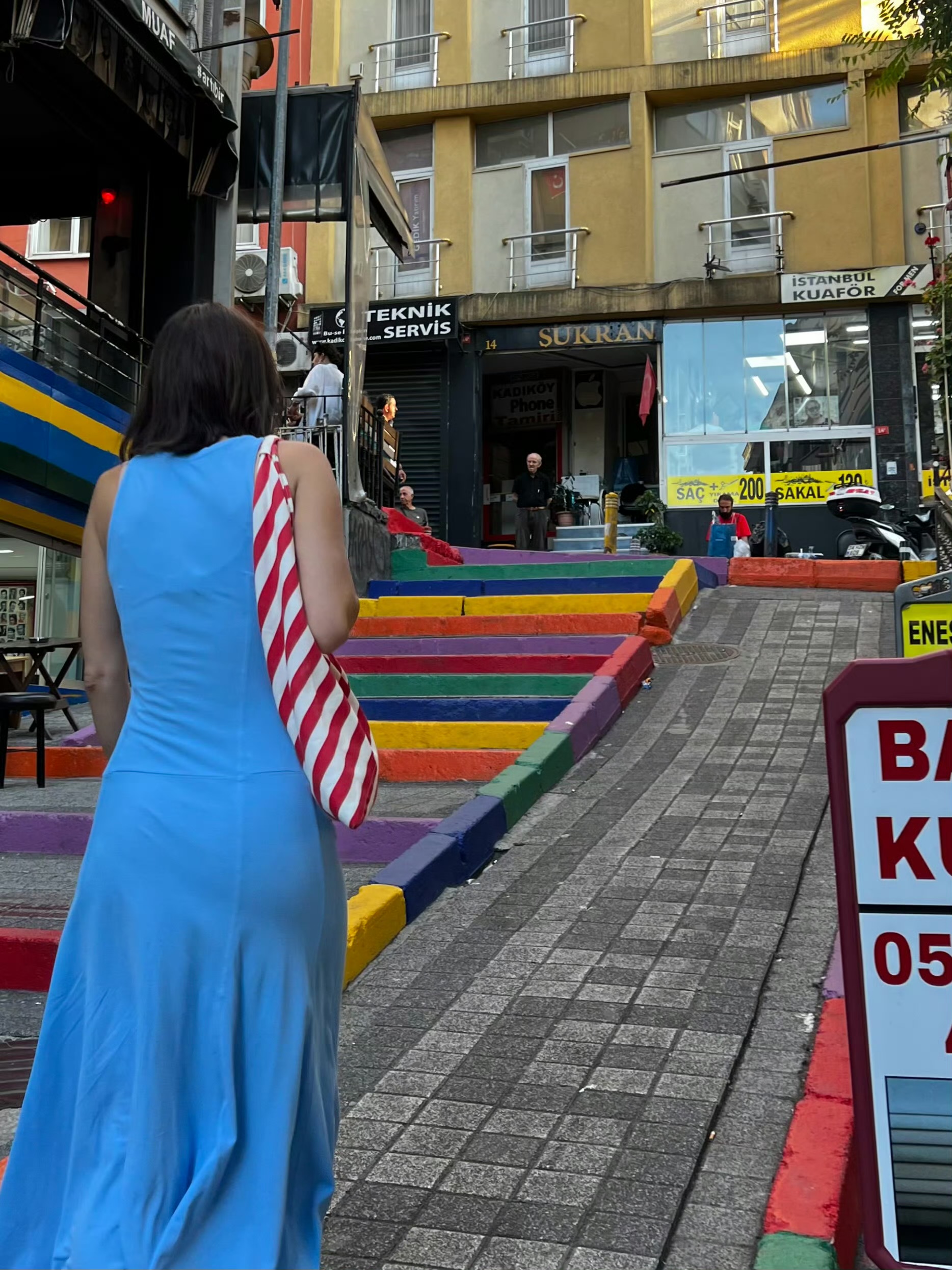*卡德柯伊,五彩斑斓的台阶,穿蓝裙子的土耳其姑娘恰好经过,和四周景色浑然一体