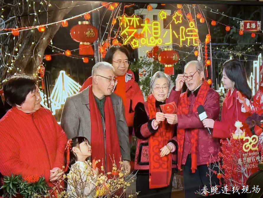 2025年1月28日晚(除夕夜),朱忠德(下图右二)作为春晚首个场外连线的对象,让更多人看到了“种花爷爷 ”的风采和浪漫以及“ 梦想小院”的生机勃勃。