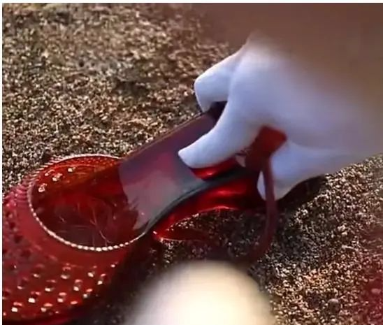 红色高跟凉鞋与现场足迹对比