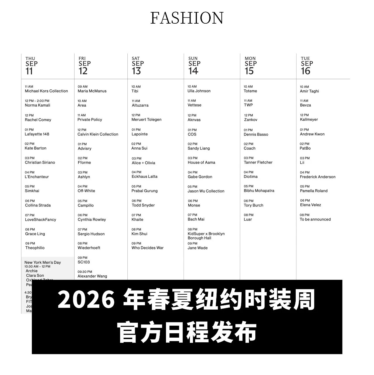 全球动态|2026 年春夏纽约时装周官方日程发布