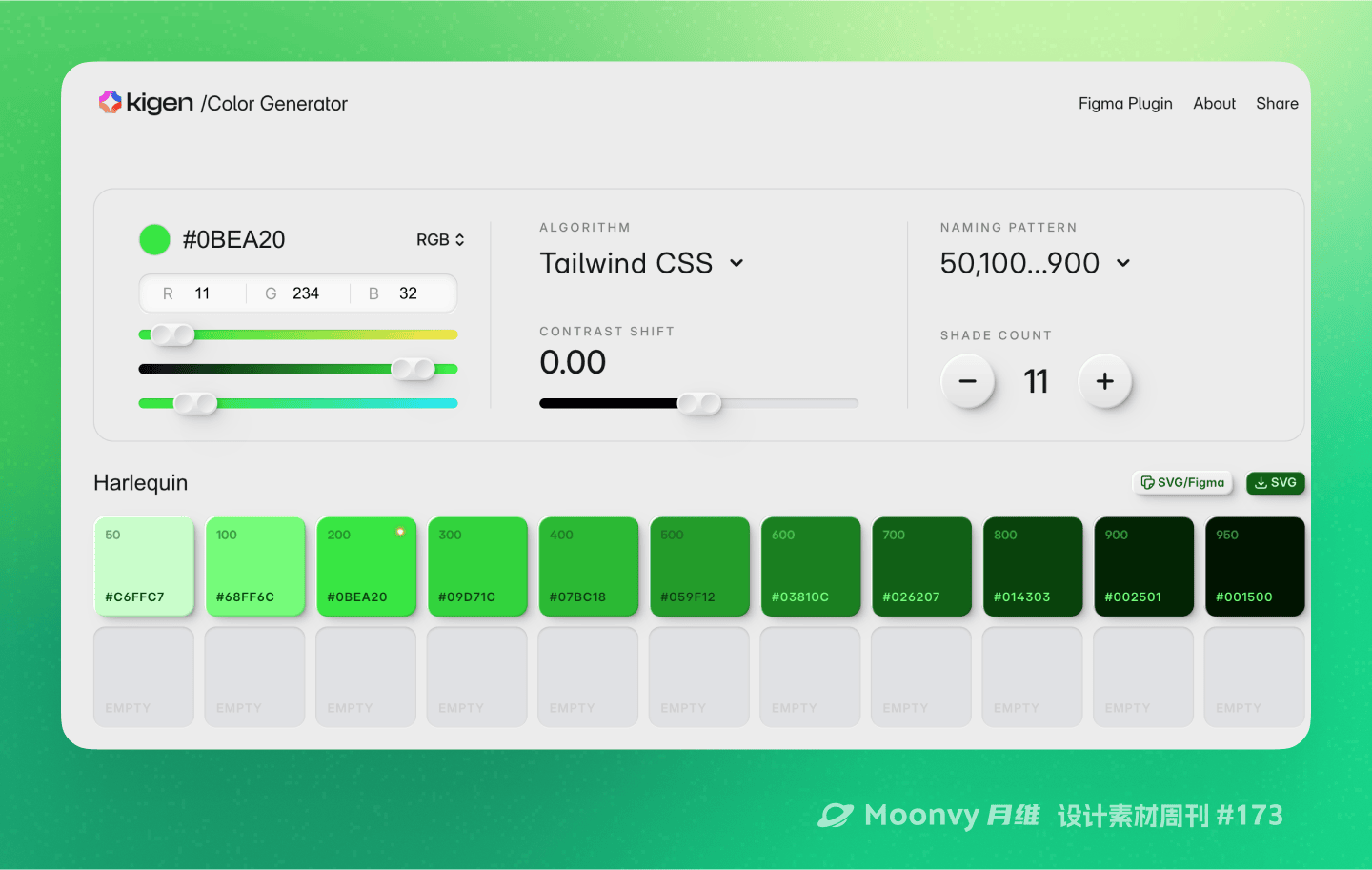 这是一个新出的配色生成器,提供了多种配色方案和风格,支持导出为 CSS 变量,还有对应的 Figma 插件。