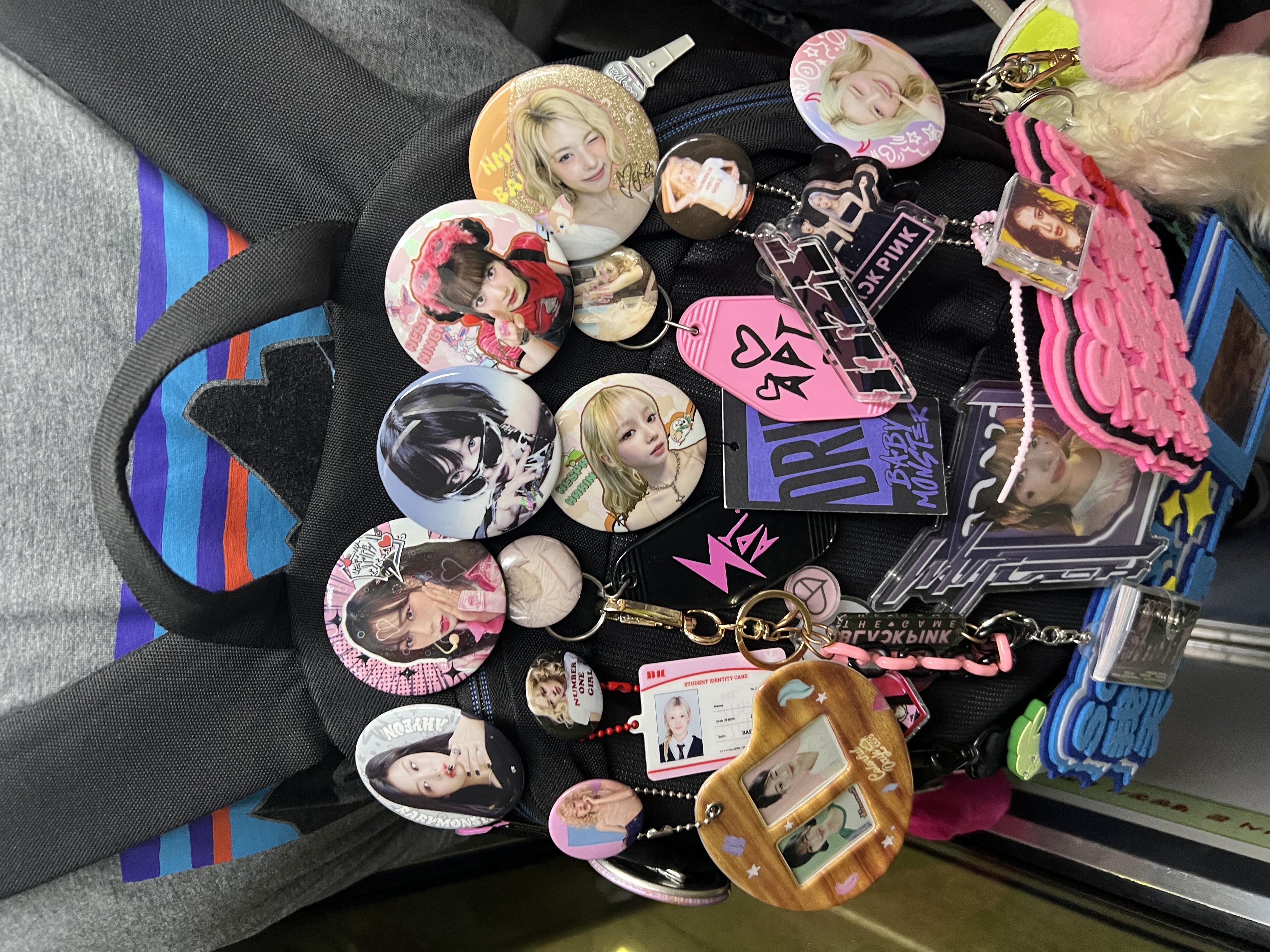 c:我也想放夕阳、机场看到一个kpop男粉背包上挂满了女团的谷子