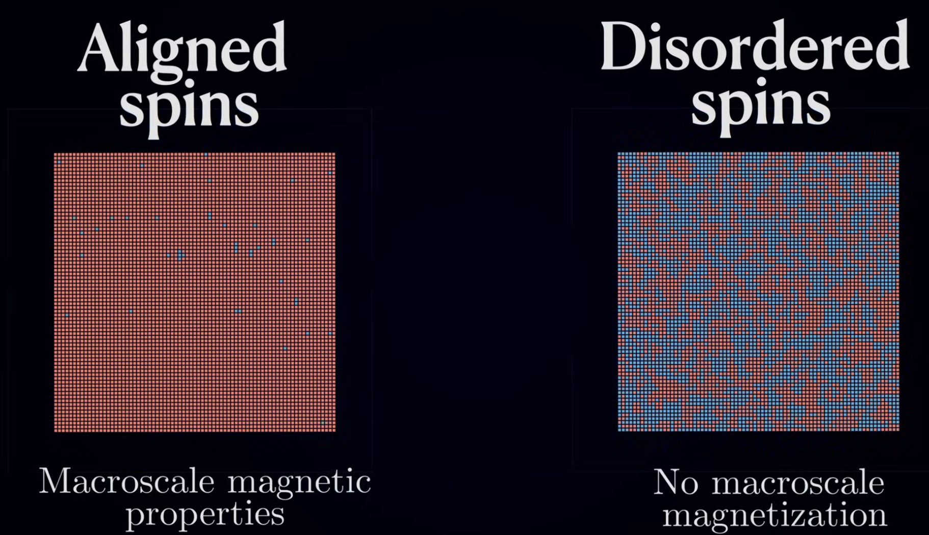 低温下的磁性和高温下的无磁性(from 油管视频)