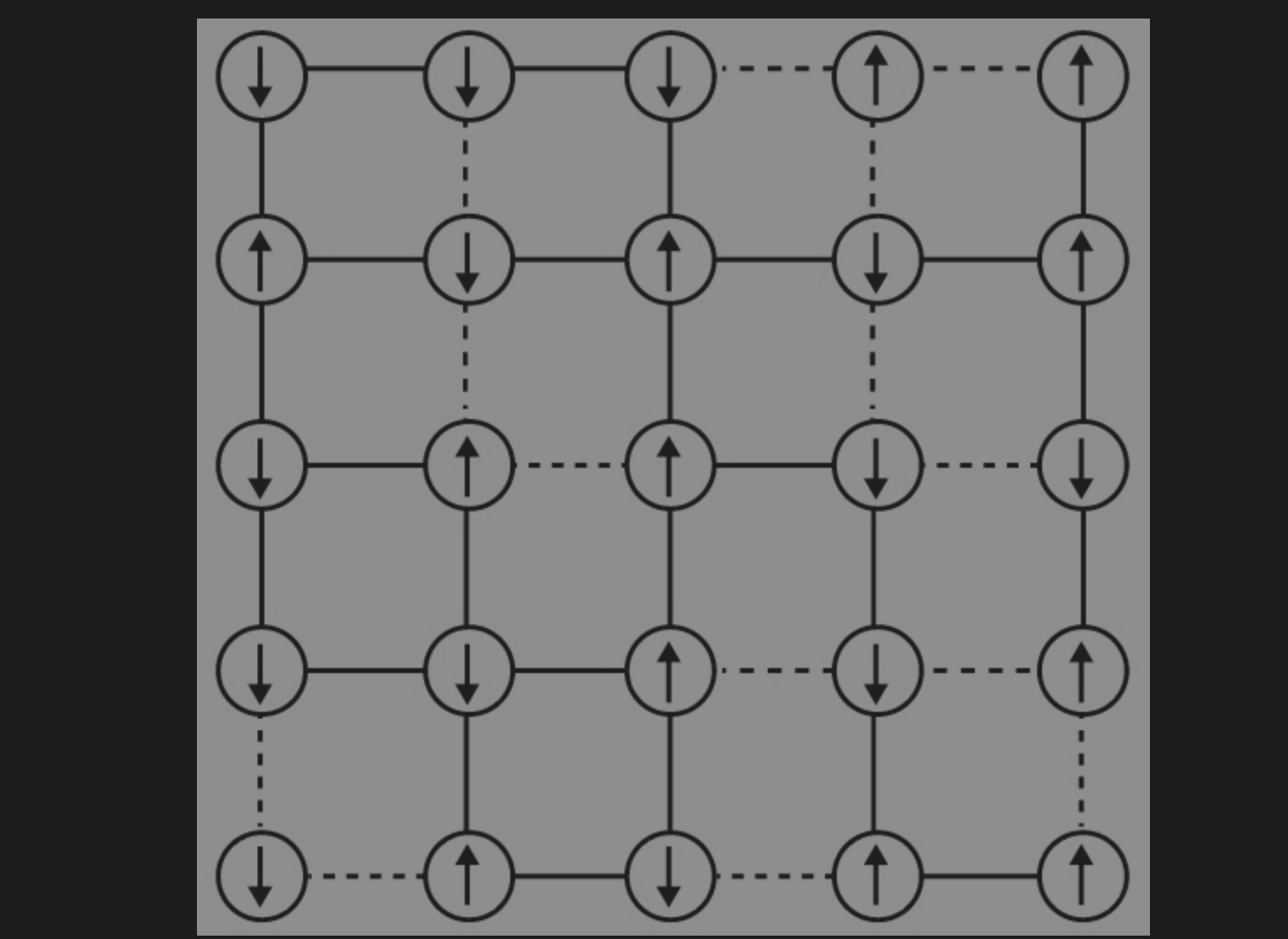 自旋玻璃示意图(实线表示“友好”,虚线表示“敌对”)(from 《随椋鸟飞行》)